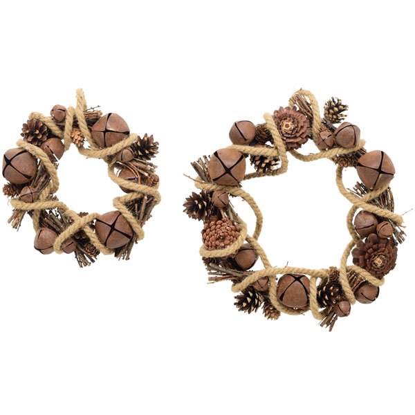 Deko Kranz Schellen, Naturkranz mit Schellen und Zapfen, Ø38cm