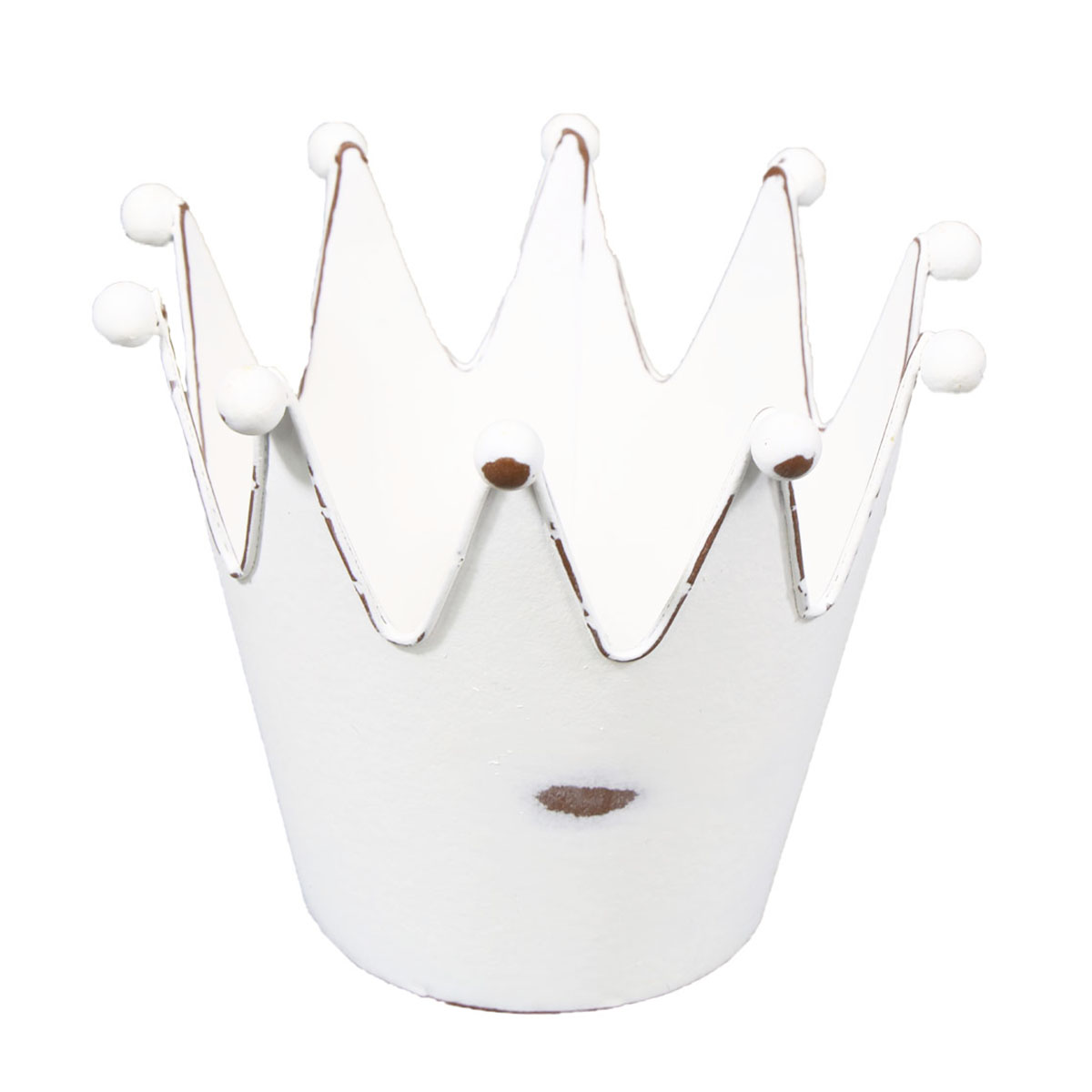 Deko Krone, Metallkrone weiß used look, 11x10cm, Metall