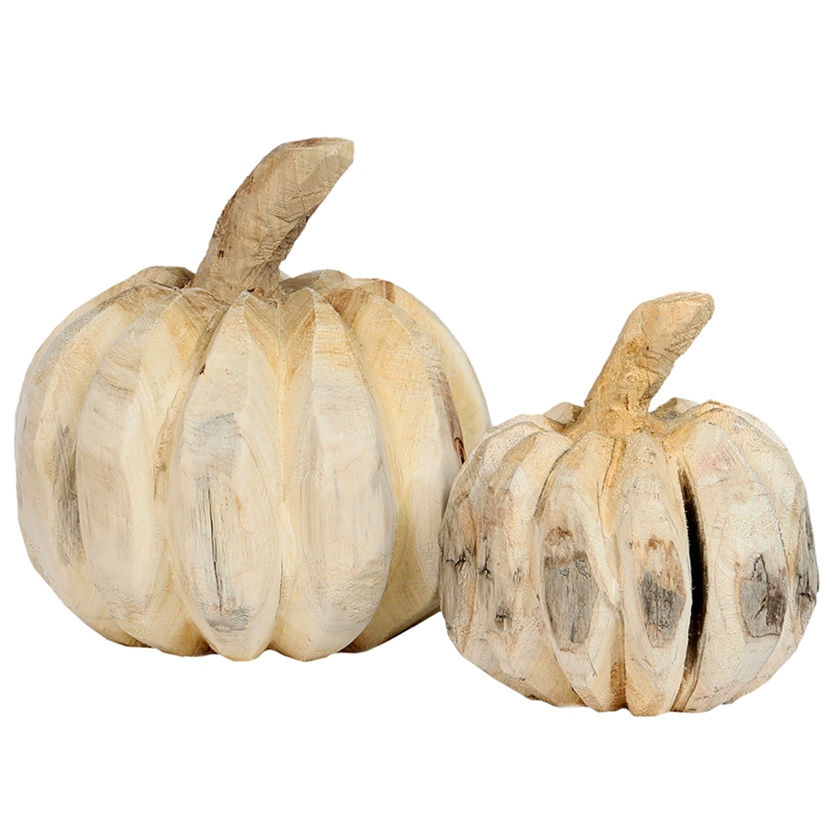 Deko Kürbis Natur, runder Kürbis aus Naturholz, 25cm, WMG Grünberger