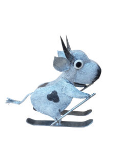 Deko Kuh, Metallkuh auf Ski, schwarz-weiß, 26x28cm, Medusa