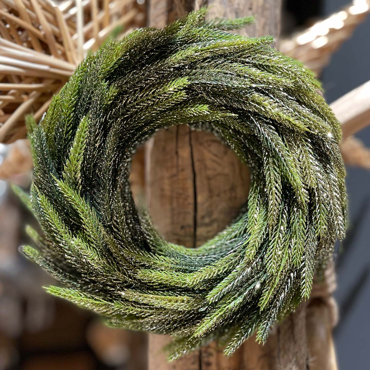 Deko Kunstkranz Kiefer mit Glimmer, Türkranz grün, Ø22cm
