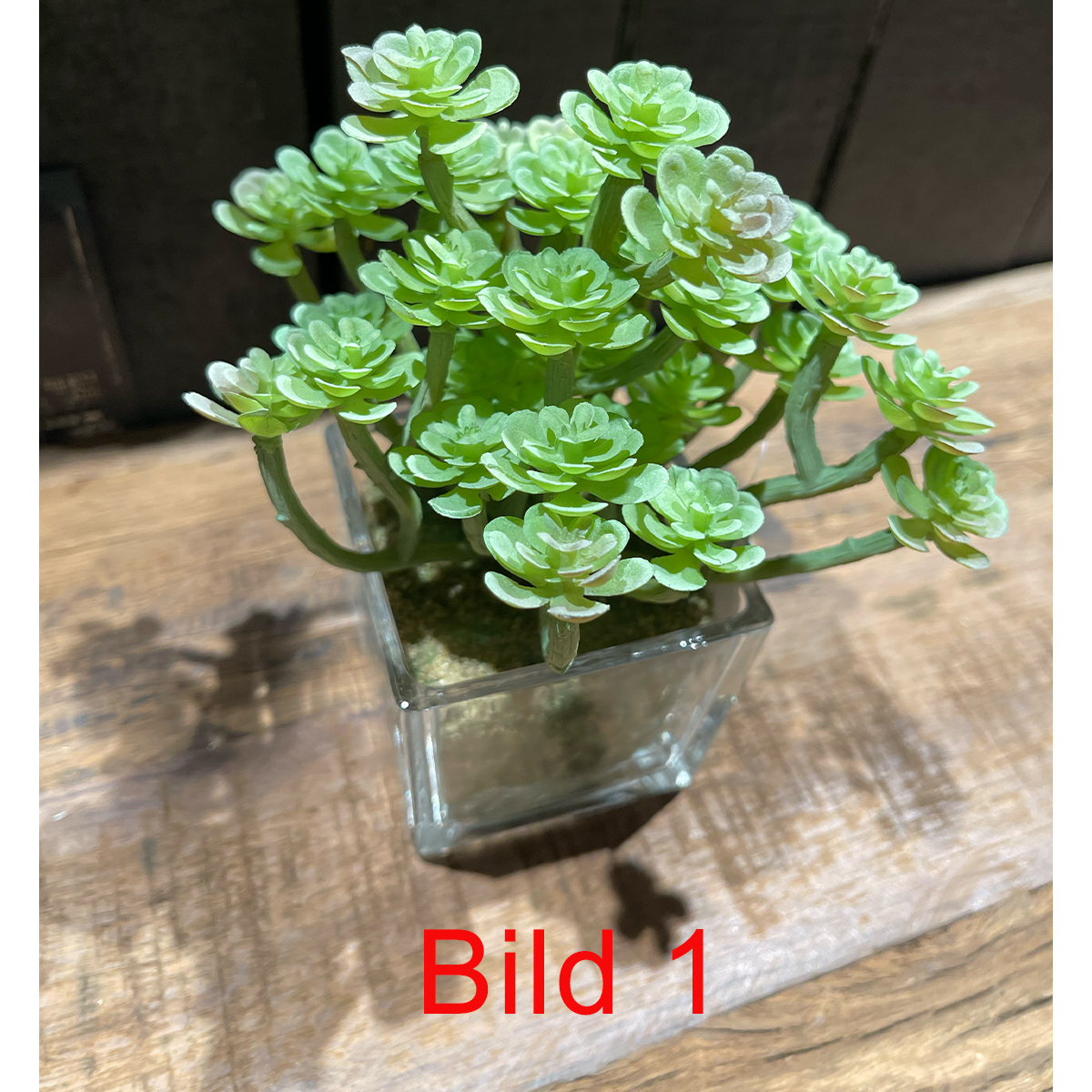 Deko Kunstpflanze Sukkulente im im Glas, Sukkulente wie echt, Sukkulente im Erdballen