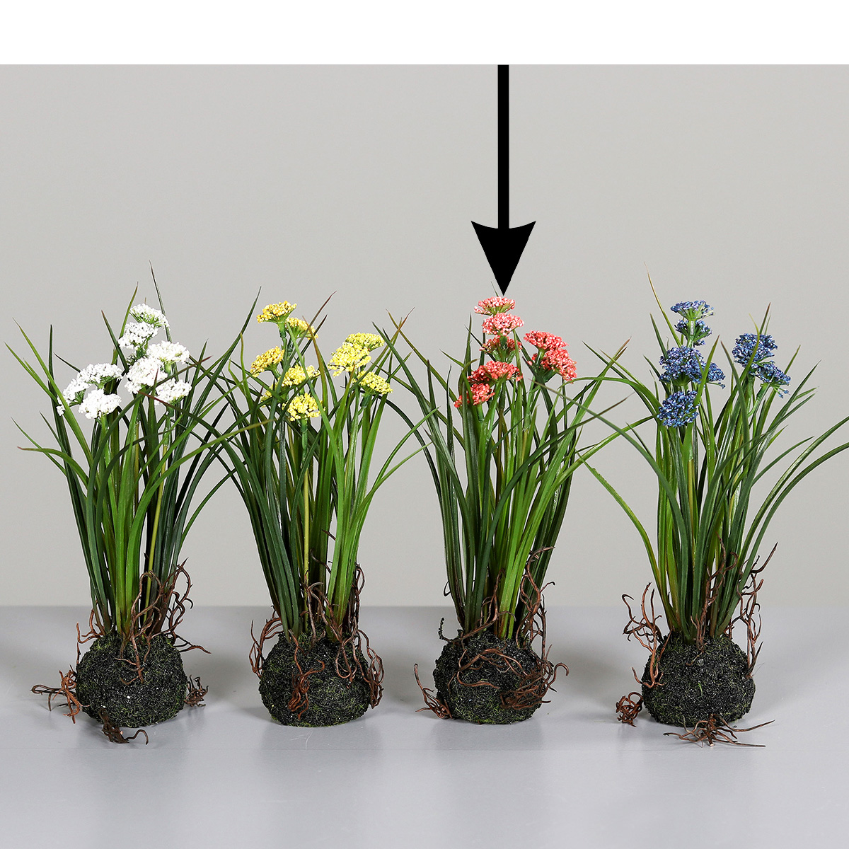 Deko Kunstpflanze Wiesenblume, Wiesenblumen rot mit Erdballen, 22cm, DPI