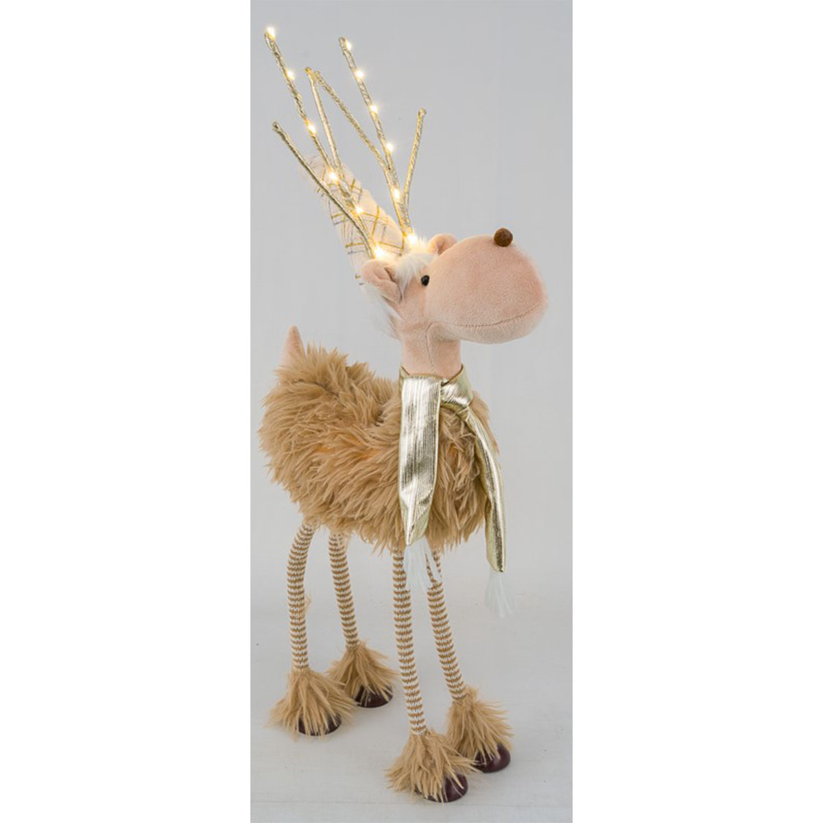 Deko LED Rentier mit Plüschkörper, lustiger Hirsch mit leuchtendem Geweih, 100cm