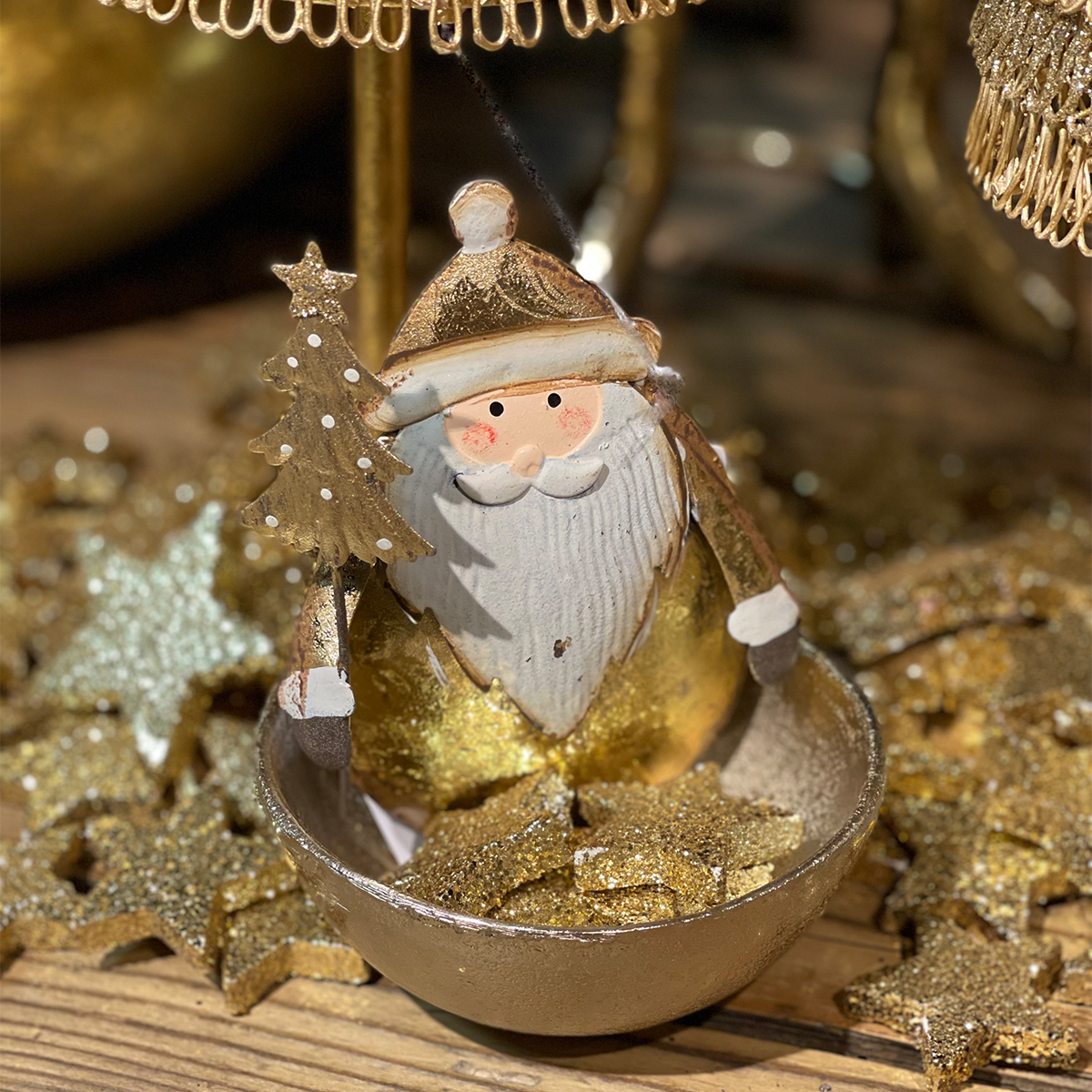 Mit seinem antiken Goldton, dem sanften Used Look und dem kleinen Tannenbaum im Arm bringt auch er jede Menge weihnachtlichen Charme mit. Ein bisschen nostalgisch, herrlich gemütlich und ganz offensichtlich im Weihnachtsmodus.