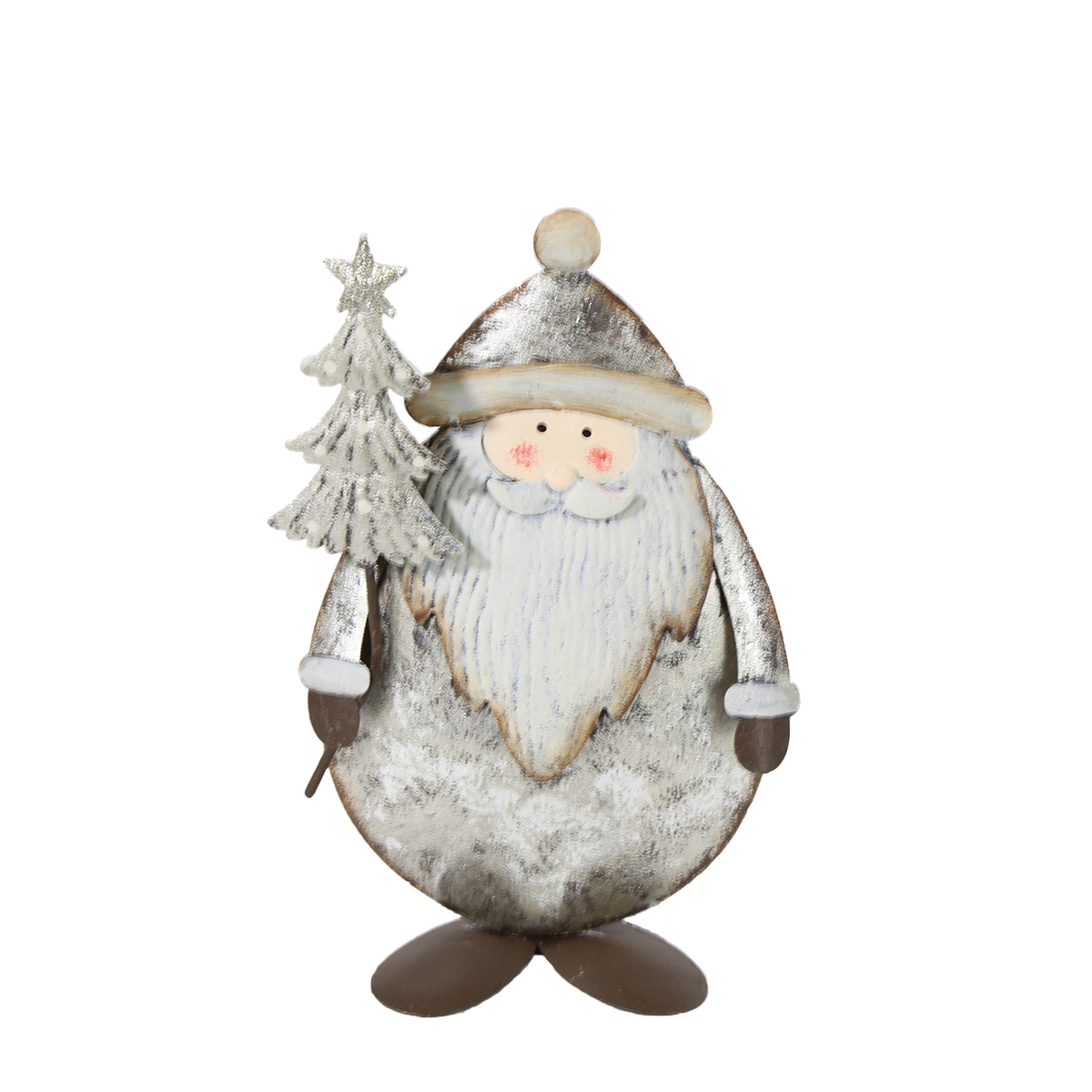 Deko Nikolaus mit Tannenbaum, Weihnachtsmann antik silber - used look, 13cm, Metall