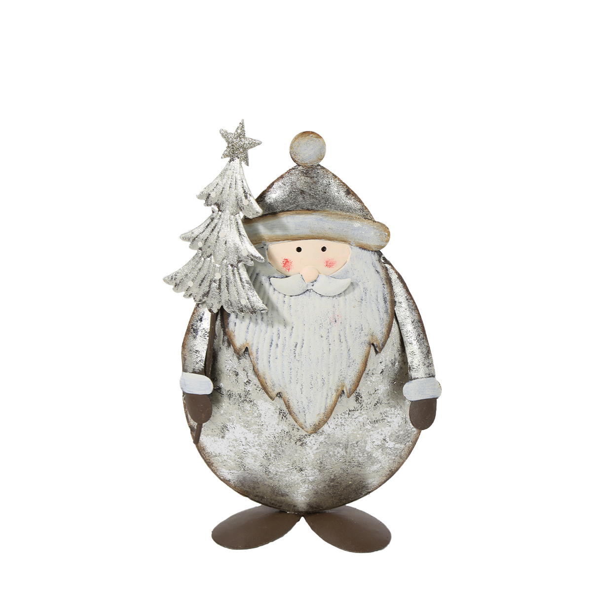 Deko Nikolaus mit Tannenbaum, Weihnachtsmann antik silber - used look, 17cm, Metall
