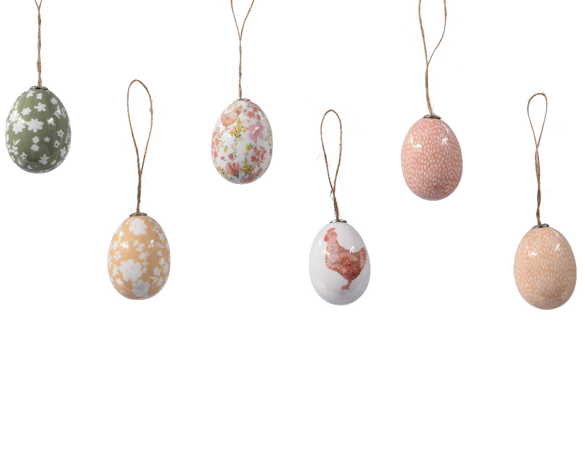 Deko Ostereier mit Hahn, Blumen und Muster, 5cm, 8St/Box, Hänger