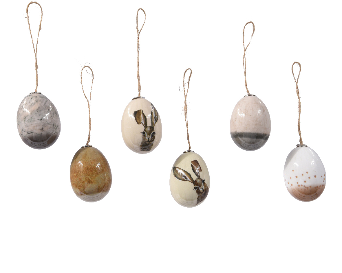 Deko Ostereier mit Hasen, marmoriert und Punkte, 5cm, 8St/Box, Hänger
