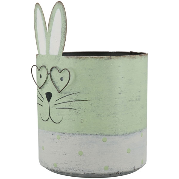Produktinformationen "Deko Pflanztopf Hase, Osterhase mit Brille, hellgrün used look, 19x12cm, Metall"