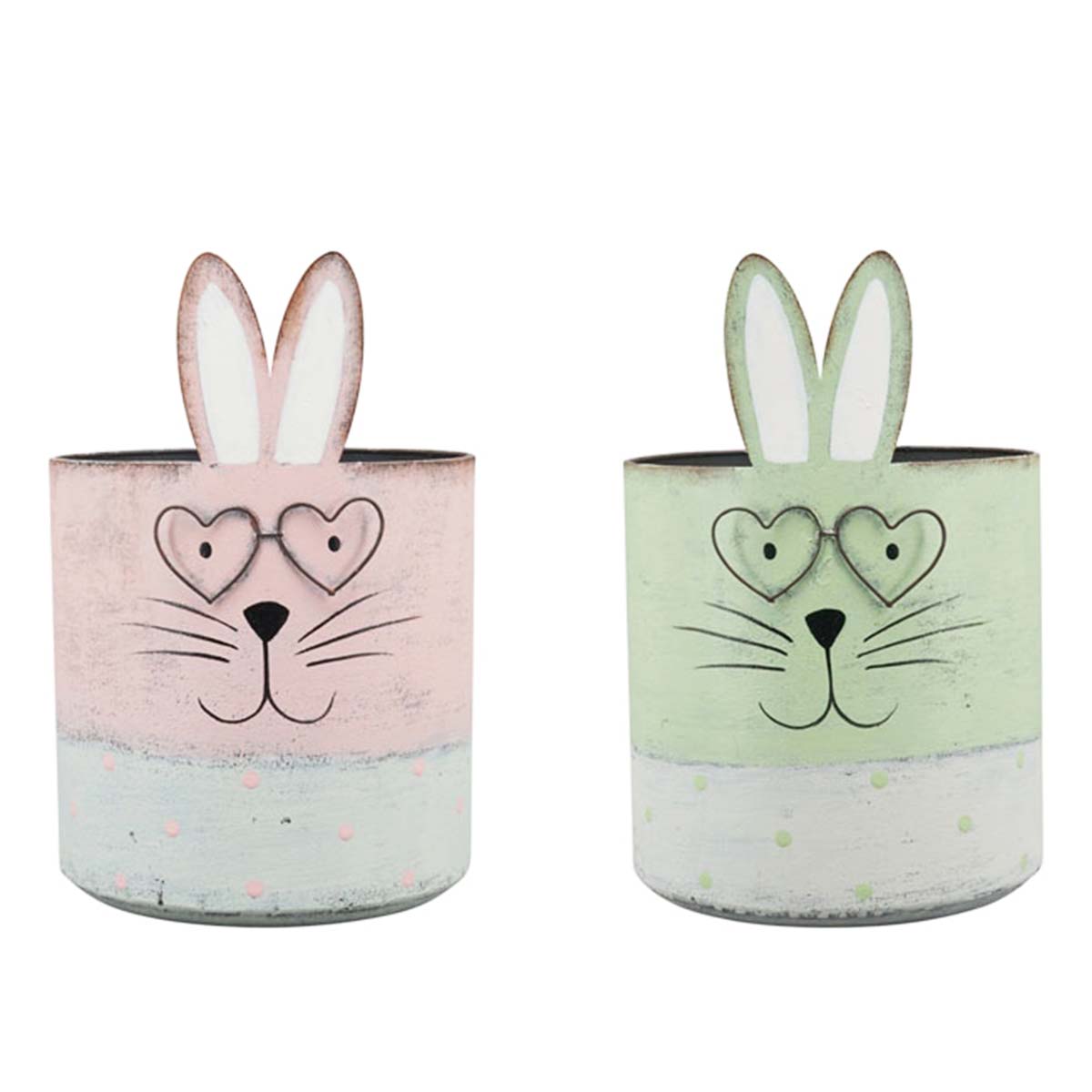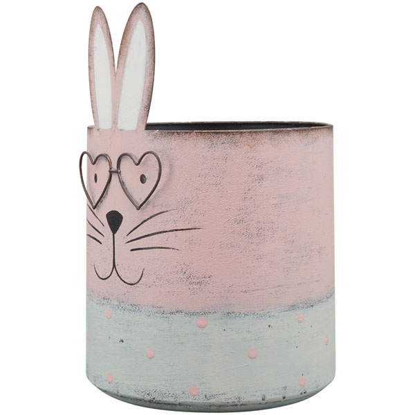 Deko Pflanztopf Hase, Osterhase mit Brille, rosa used look, 19x12cm, Metall