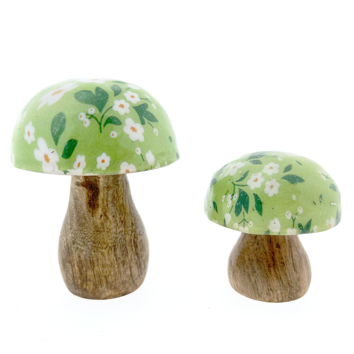 Deko Pilz mit grüner Kappe und Blumenmuster, kleiner Holzpilz mit Blumen, 8cm