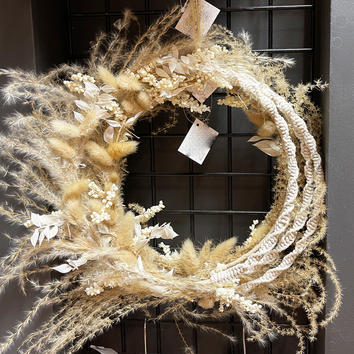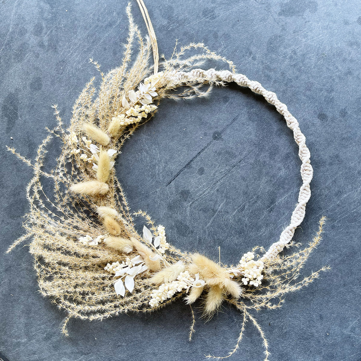 Deko Ring Blumenkranz Boho, Makrameering mit Trockenblumen, creme-natur, Ø30cm