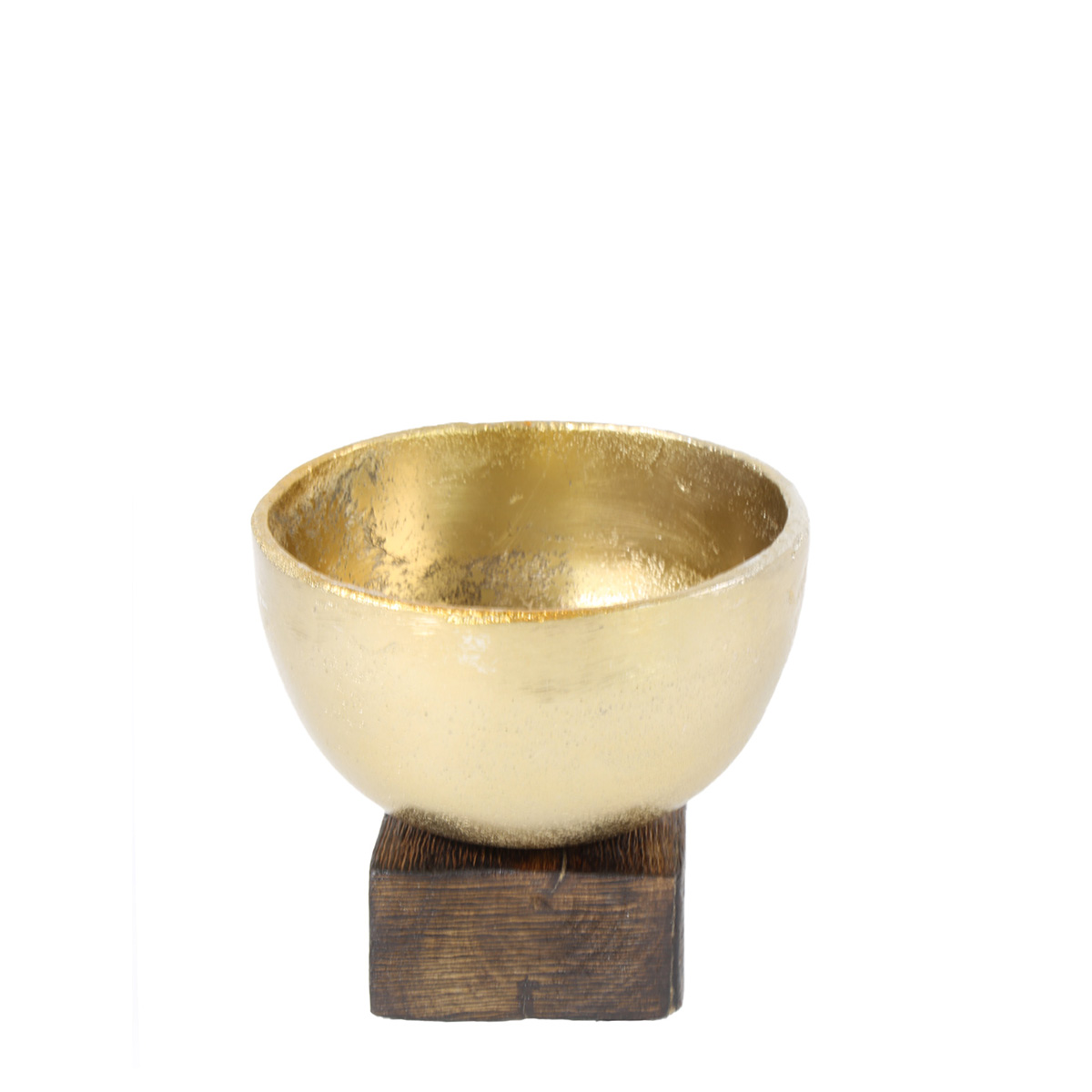 Deko Schale auf Holzsockel gold antik, Metallschale Weihnachten, Ø12cm
