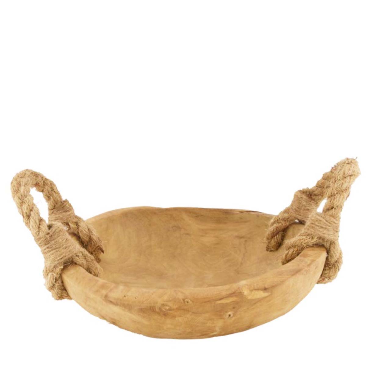 Deko Schale Teak Natur, Holzschale rund mit Jutegriff, Ø28cm, DIJK Natural Collections