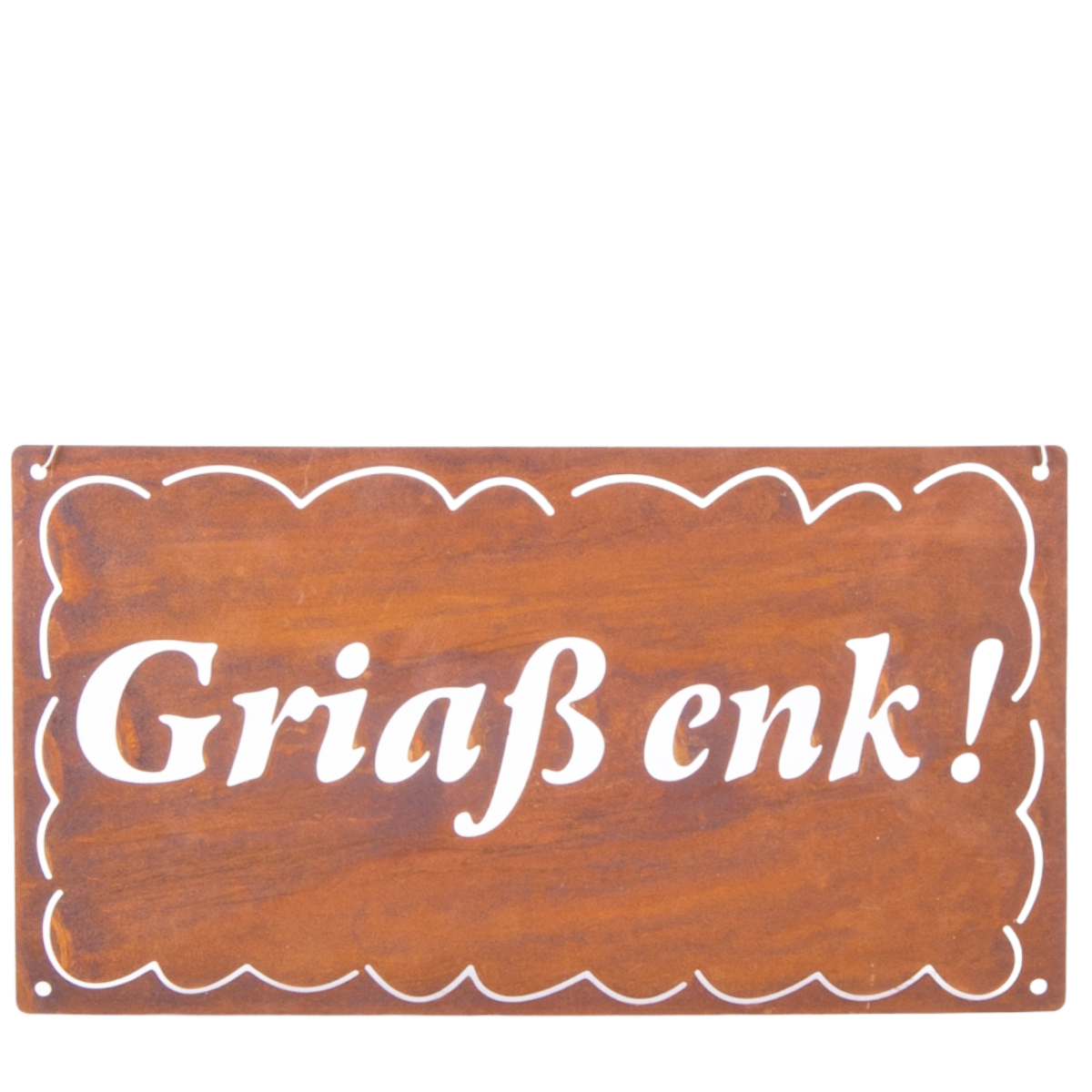 Deko Schild Griaß enk, Rostschild alpenländisch: Griaß enk! 30x17cm, Edelrost, Gerrys Garden