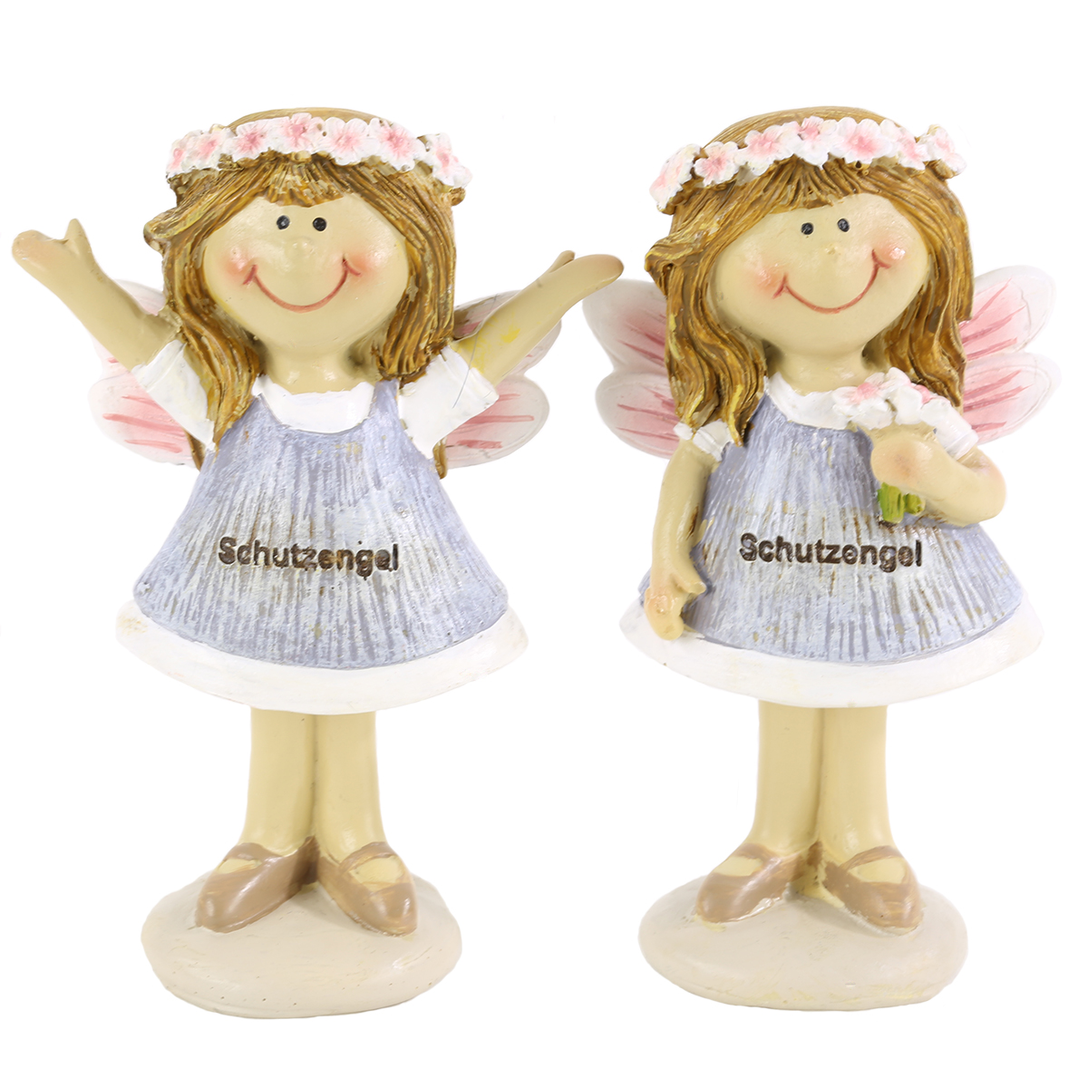 Herstellerinformationen zu "Deko Schutzengel mit Blütenkranz und Blumenstrauß, rosa-grau, 9cm, Polyresin"