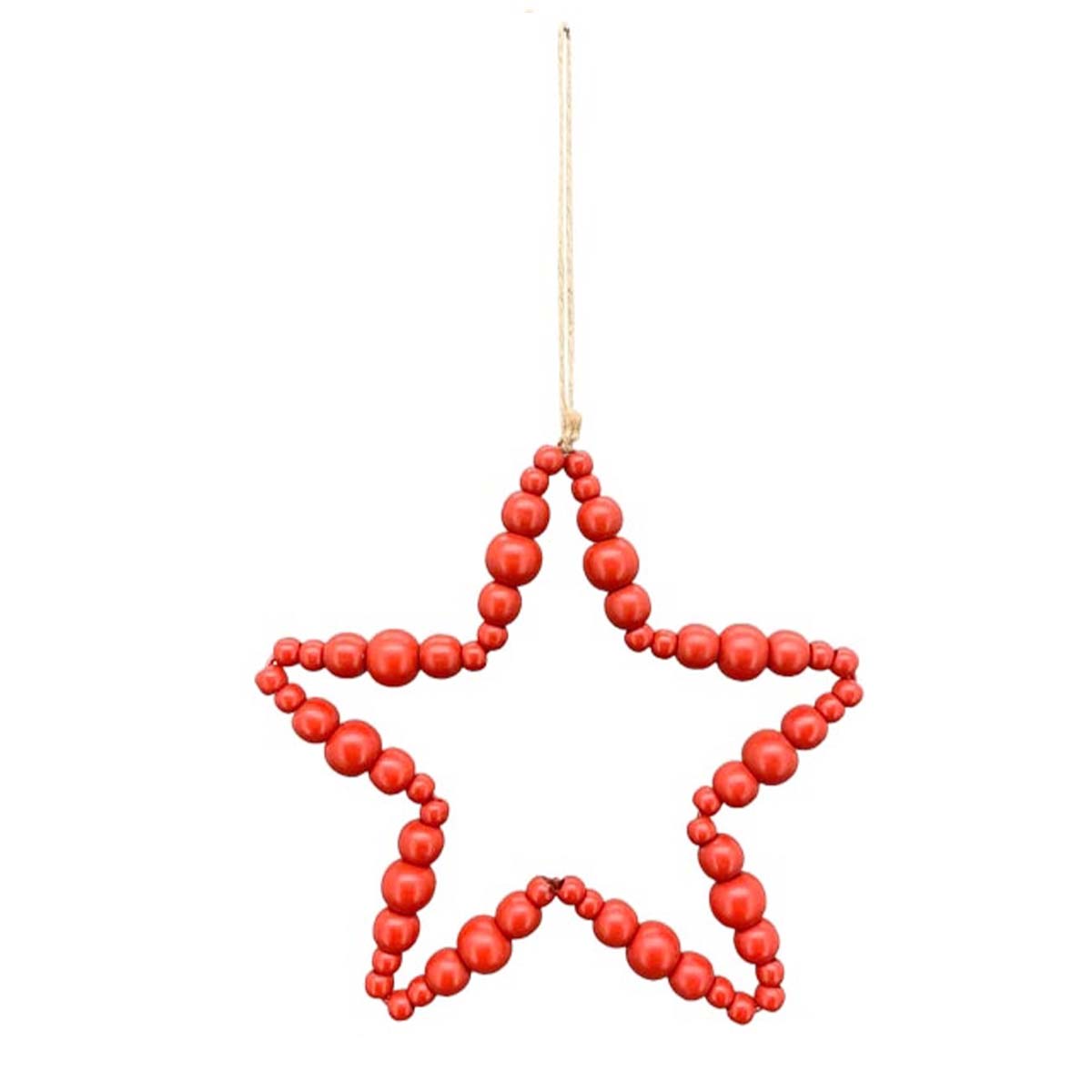Deko Stern, Holzstern aus Naturholzperlen in rot, Ø20cm, Hänger