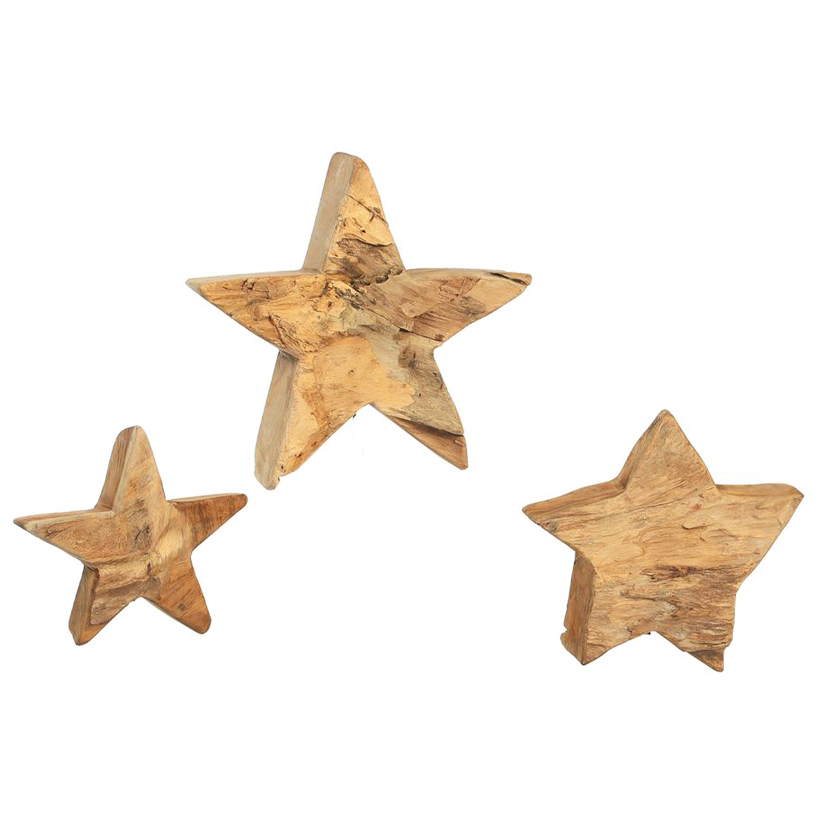 Deko Stern, Holzstern Teak unfinish, 20x20cm, WMG Grünberger