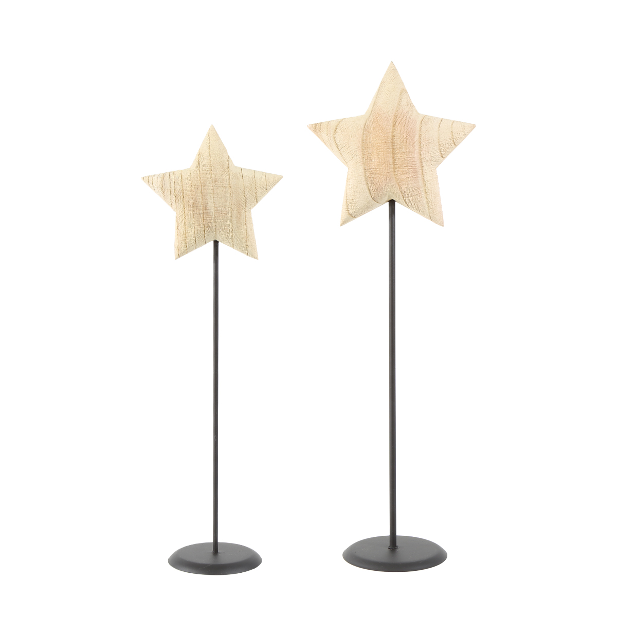 Deko Stern Naturholz, Holzstern Natur auf Metallständer, 43cm