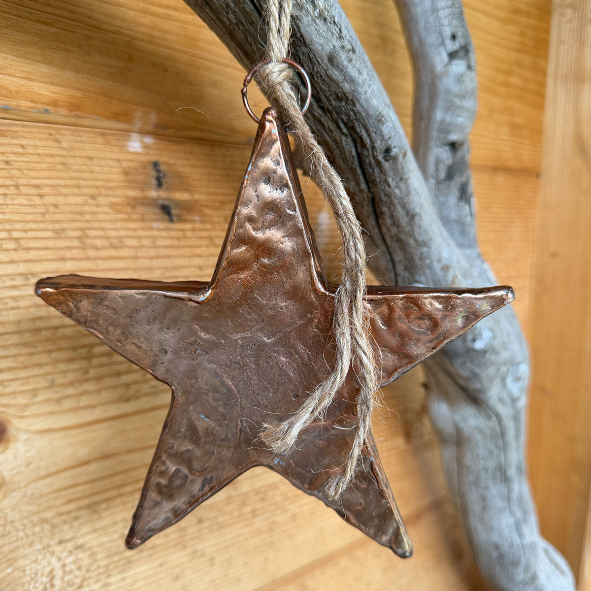Der rustikale Metallstern in warmem Kupfer bringt natürlichen Charme und einen Hauch von Vintage in deine Advents und Weihnachtsdekoration. Die leicht gehämmerte Oberfläche sorgt für einen authentischen, handwerklichen Look. Mit der Juteschnur kannst du ihn wunderbar an Zweigen, Türen, Fenstern oder am Tannenbaum aufhängen. Ein zeitloses Dekostück, das sich auch das ganze Jahr über in natürlichen Wohnstilen wie Landhaus, Chalet oder Boho schön einfügt.