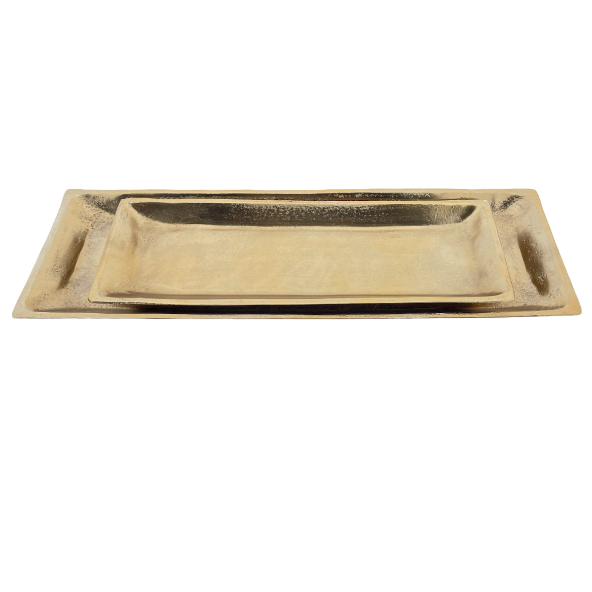 Produktinformationen "Deko Tablett antik gold, Tablett länglich, 35x14cm, Metall"