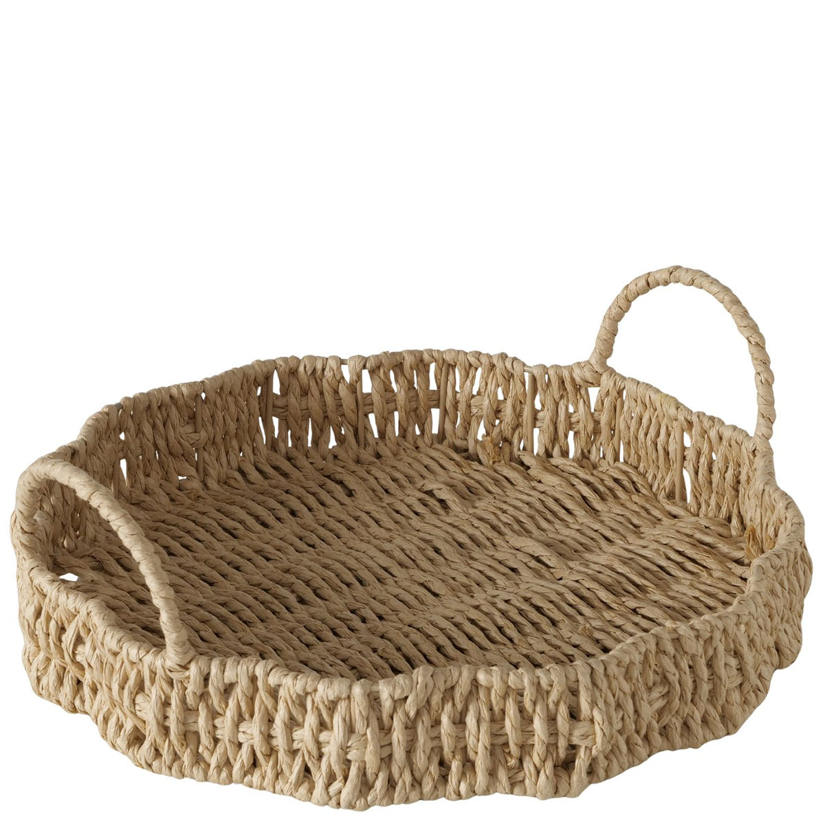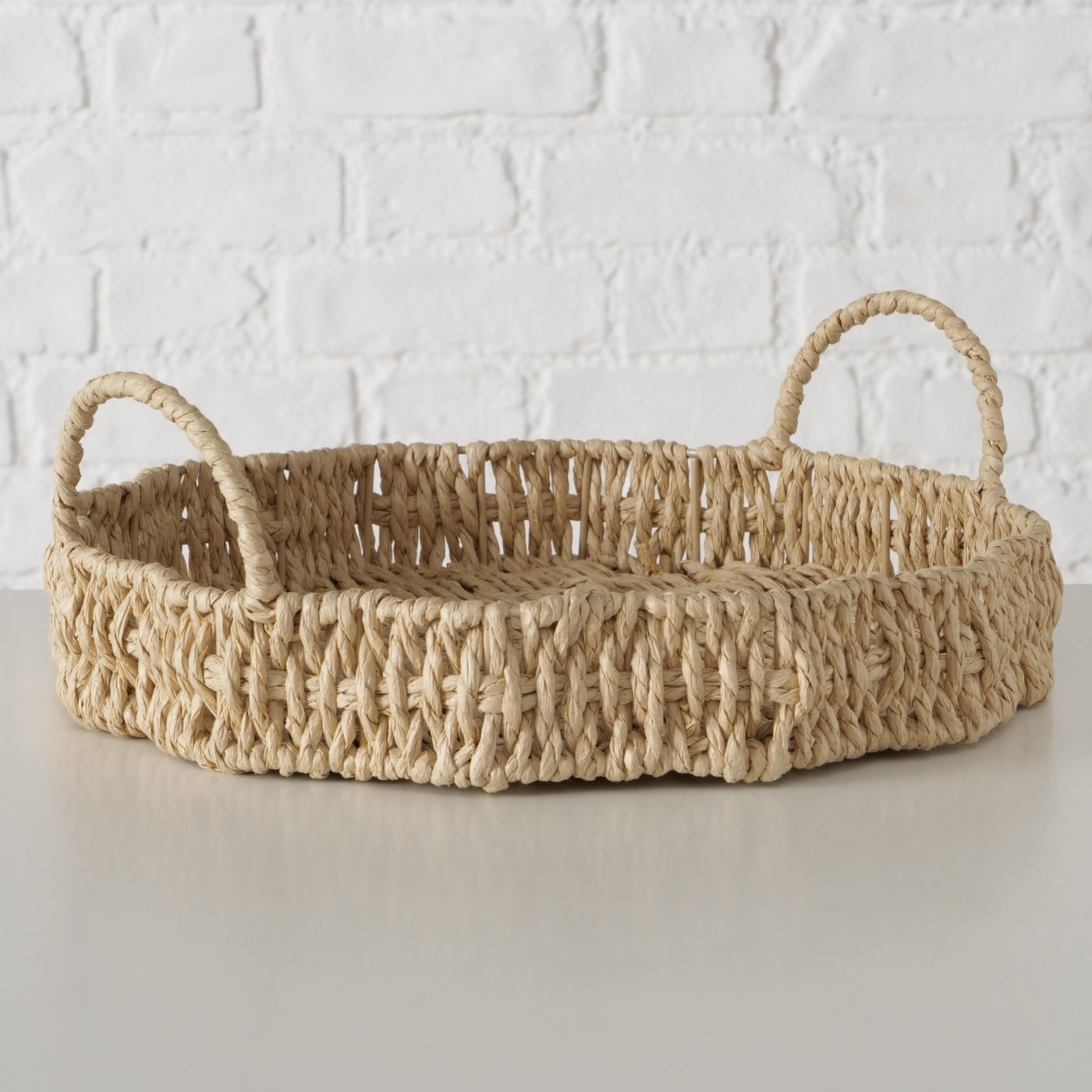 Deko Tablett Wavy Natur, mit Henkel in Seegrasoptik, Ø30cm, Boltze Home Collections