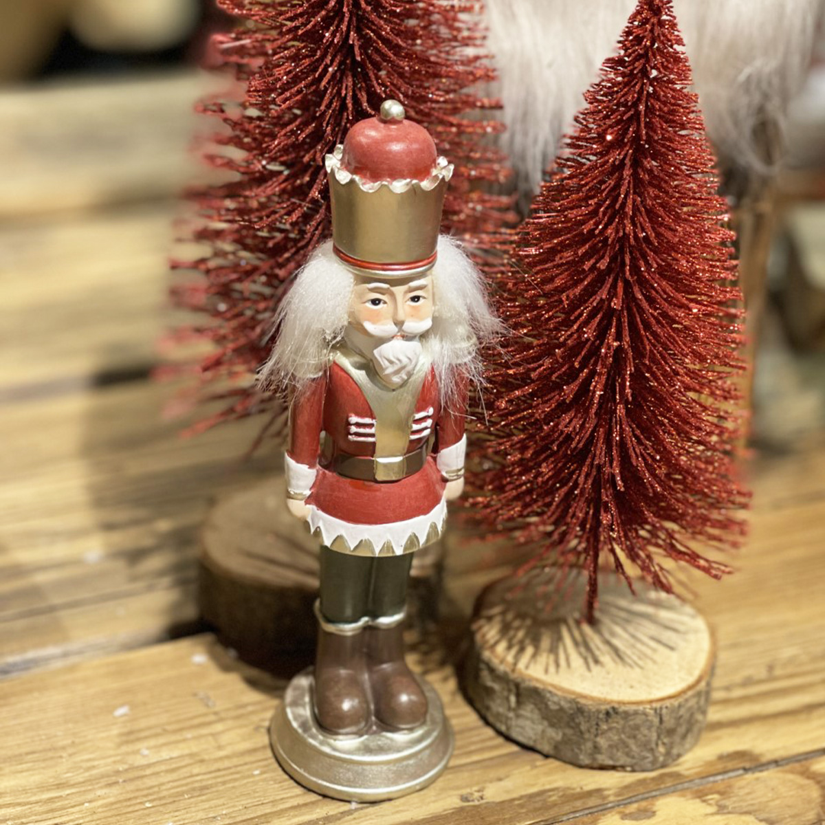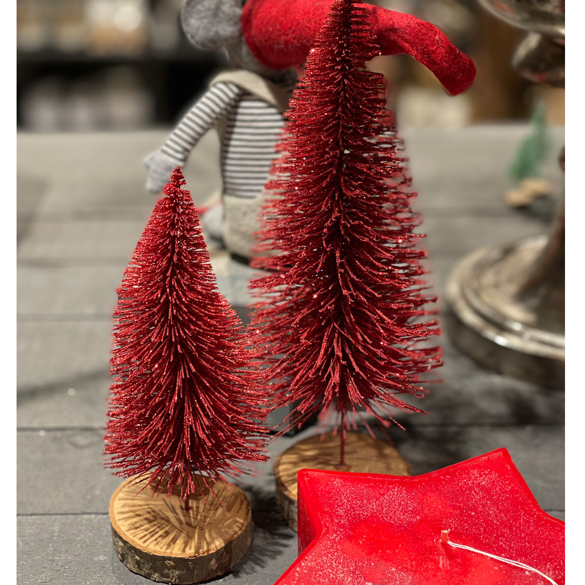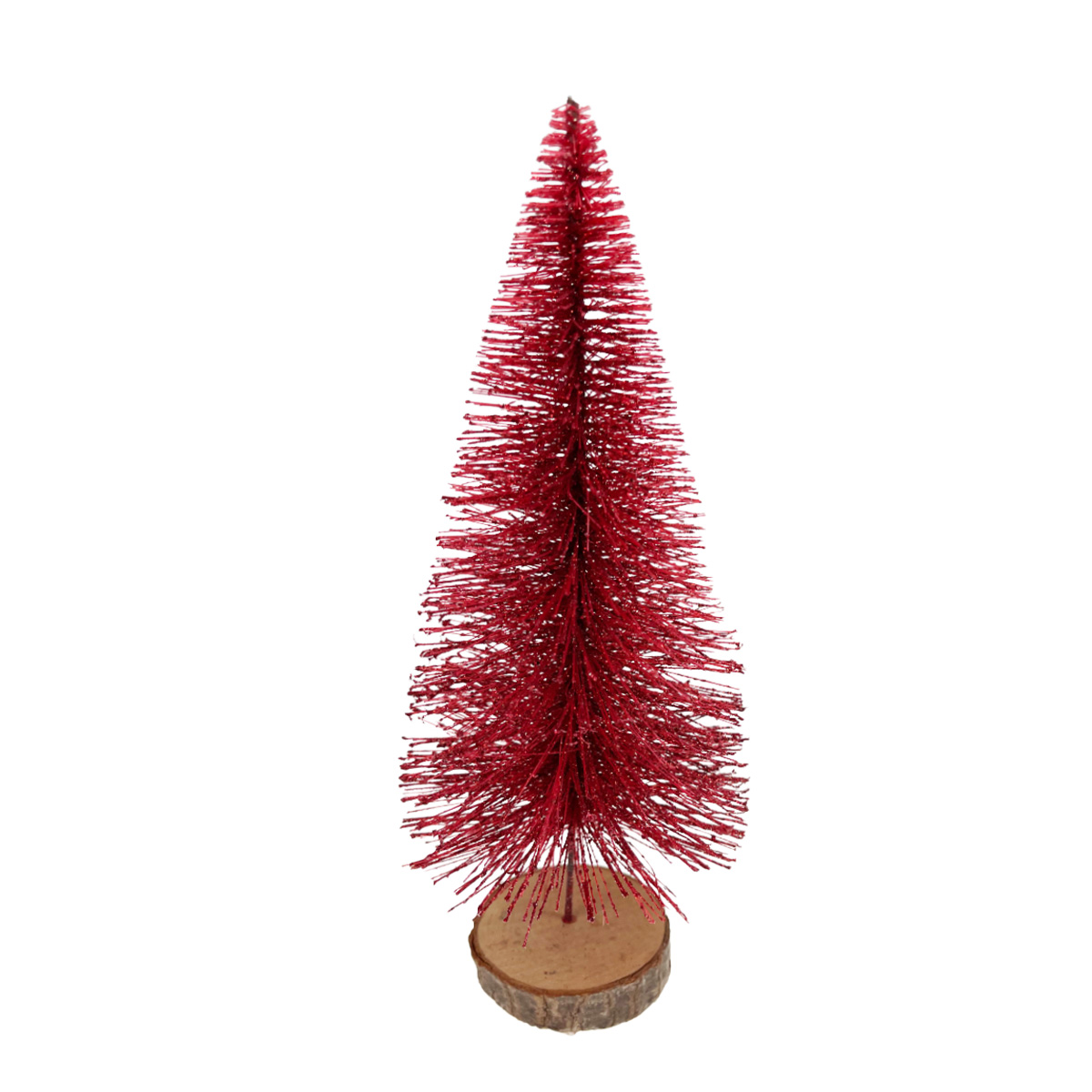 Deko Tannenbaum, roter Tannenbaum mit Glimmer, auf Holzsockel, 26cm