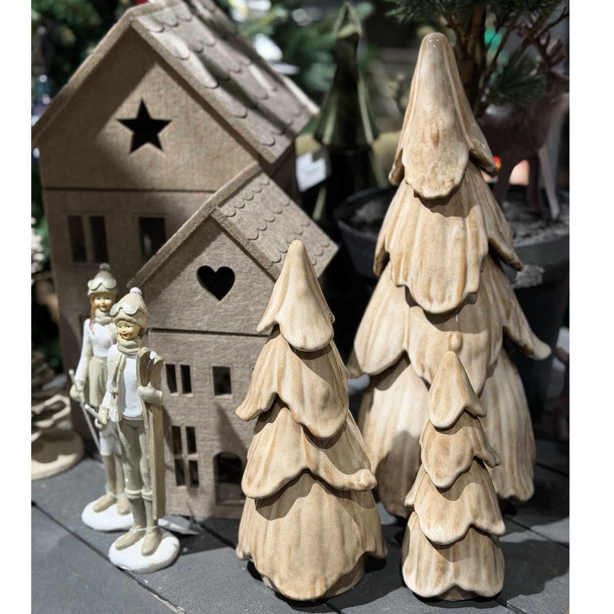 Deko Tannenbaum, schlichter Keramikbaum creme-braun, 38cm