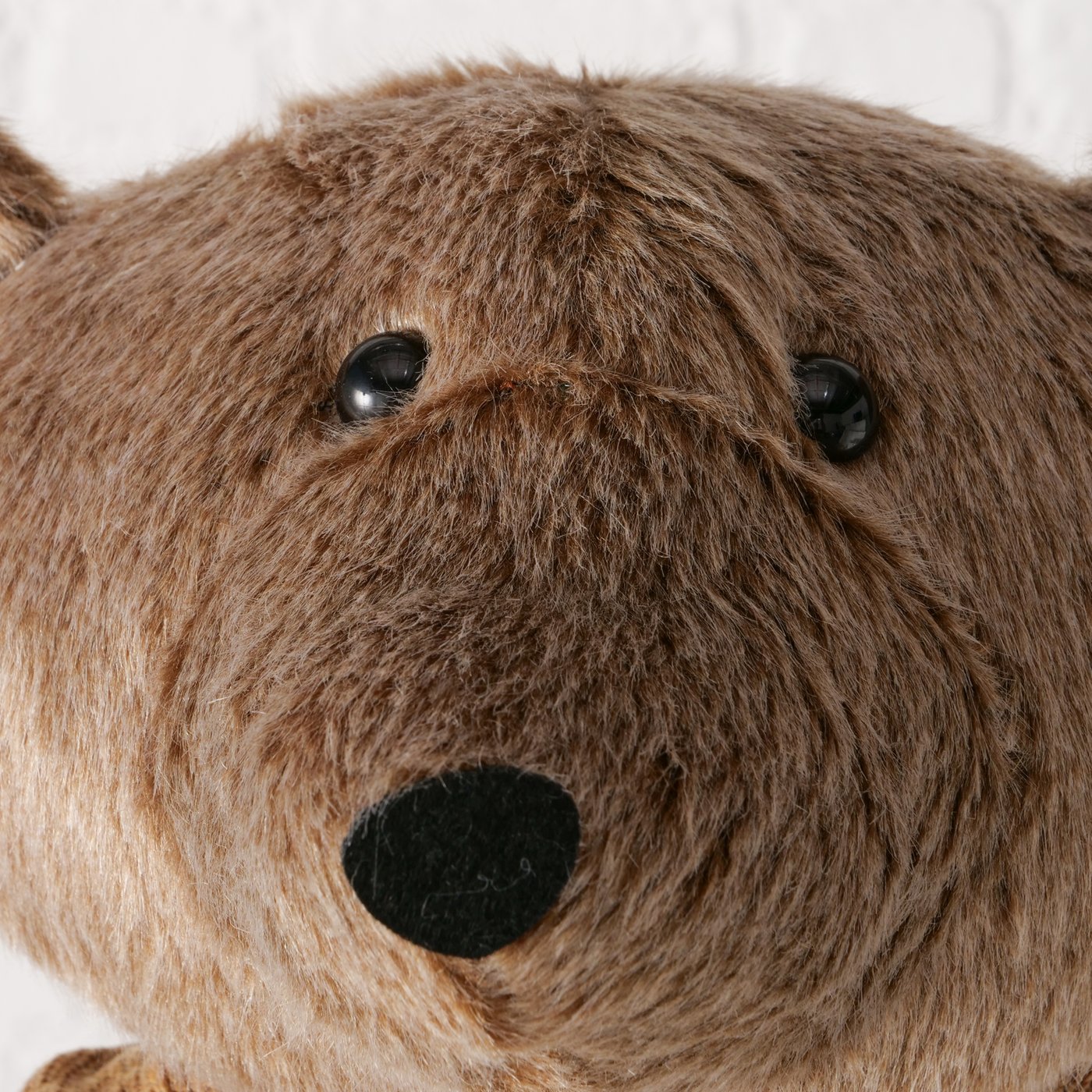 Die Kombination aus weichen Textilien und stabilem Innenleben sorgt für eine hochwertige Anmutung, während die handgearbeitete Verarbeitung jedem Bären seinen ganz eigenen Ausdruck verleiht. Die natürlichen Brauntöne und das ruhige Design passen perfekt zu gemütlicher Winterdeko, rustikalem Wohnstil oder liebevoll gestalteten Weihnachtslandschaften.