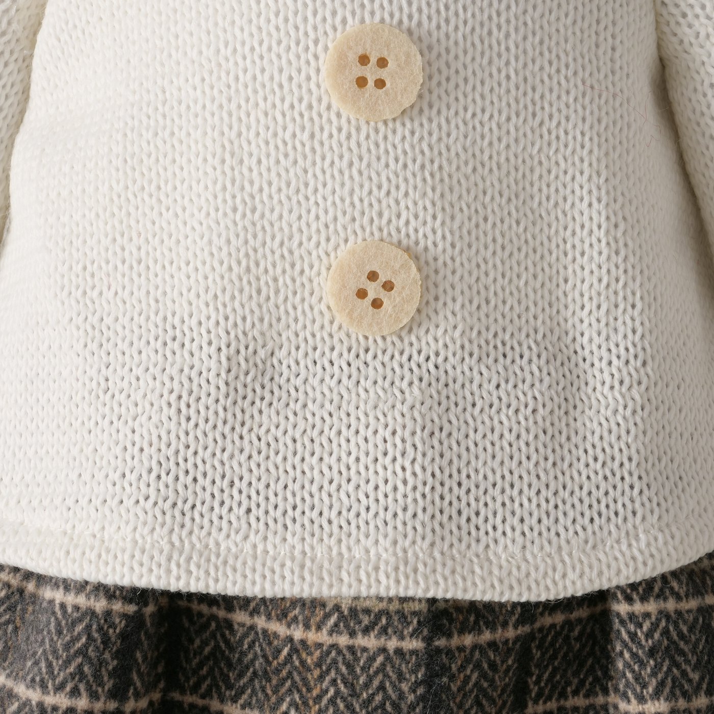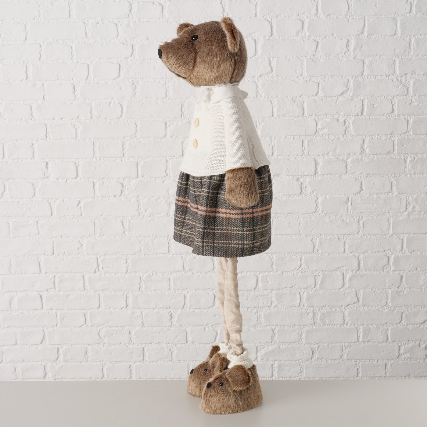 Die charmante große Schwester von Teddie bringt eine ganz eigene, liebevolle Note in deine Dekoration. Mit ihrem karierten Rock, der feinen Bluse und den niedlichen „Hundeschuhen“ wirkt sie wie aus einer warmen Kindheitserinnerung – ruhig, freundlich und einfach zum Gernhaben.