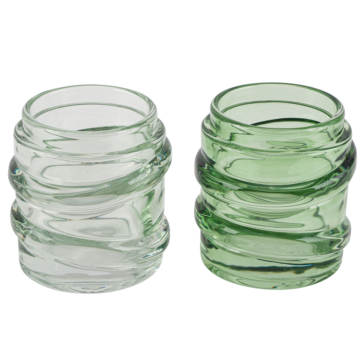 Deko Teelichtglas Wellenform, Windlicht aus Glas hellgrün, 9x9cm