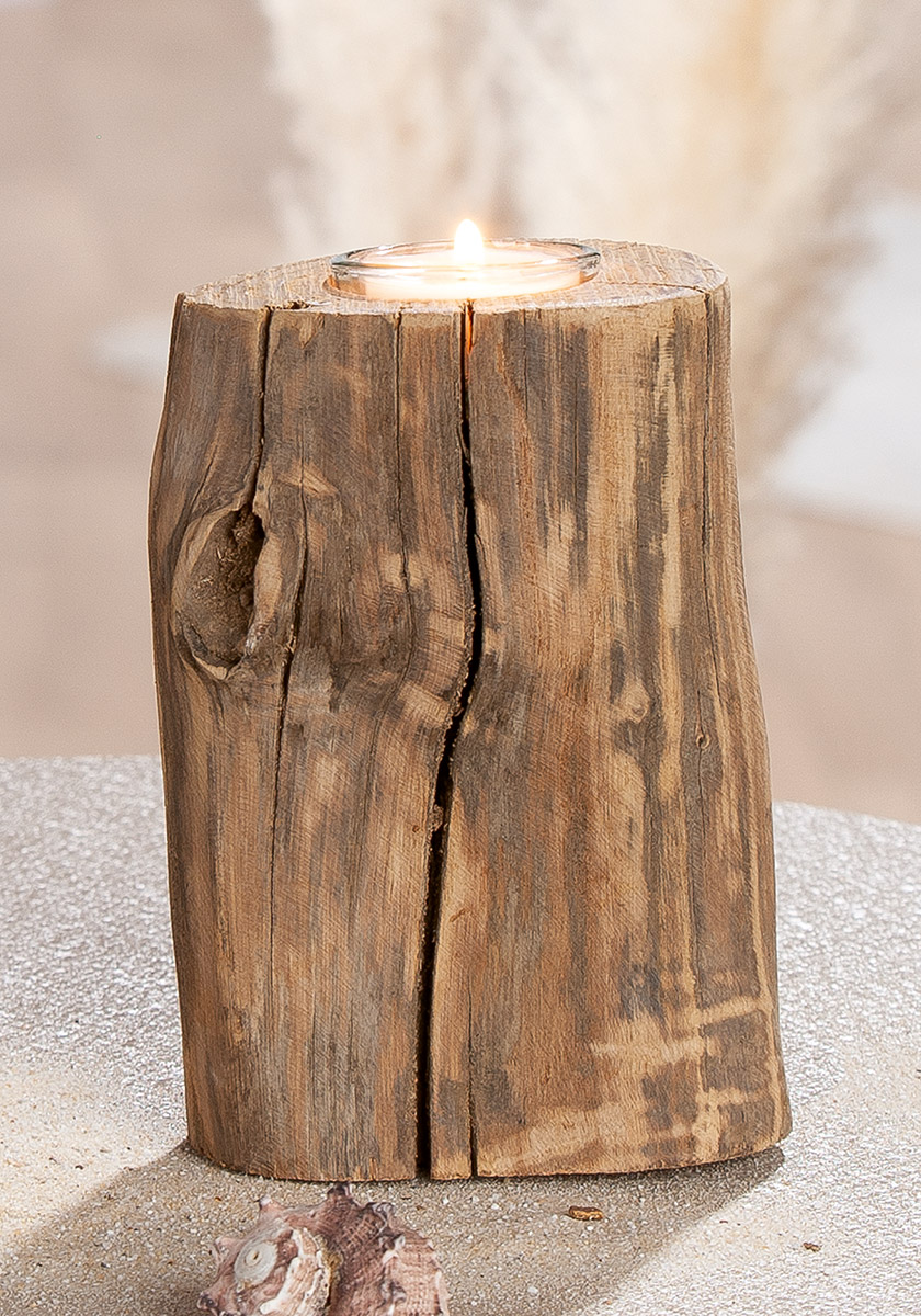 Deko Teelichthalter Holzsäule Naturholz, 15cm