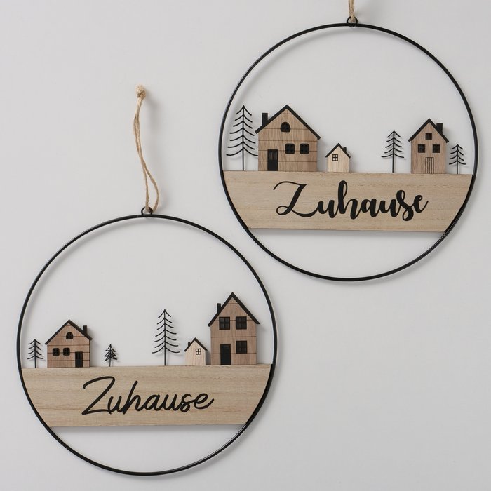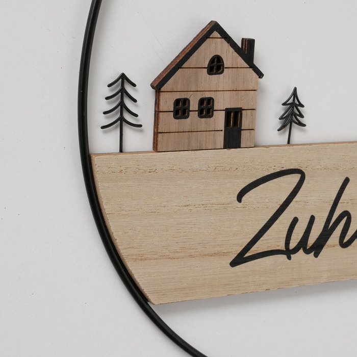 Herstellerinformationen zu "Deko Türschild Zuhause, Hänger Homewood, rund mit Häuschen und Bäume, Ø28cm, Boltze Home Collections"