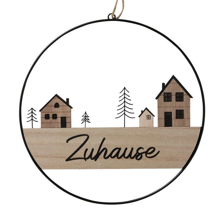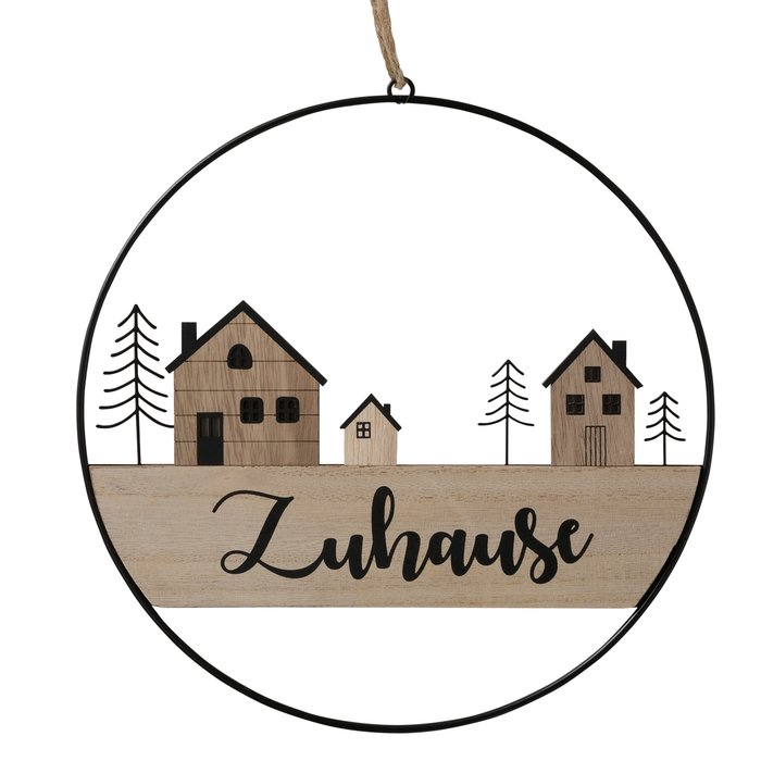 Deko Türschild Zuhause, Hänger Homewood, rund mit Häuschen und Bäume, Ø28cm, Boltze Home Collections