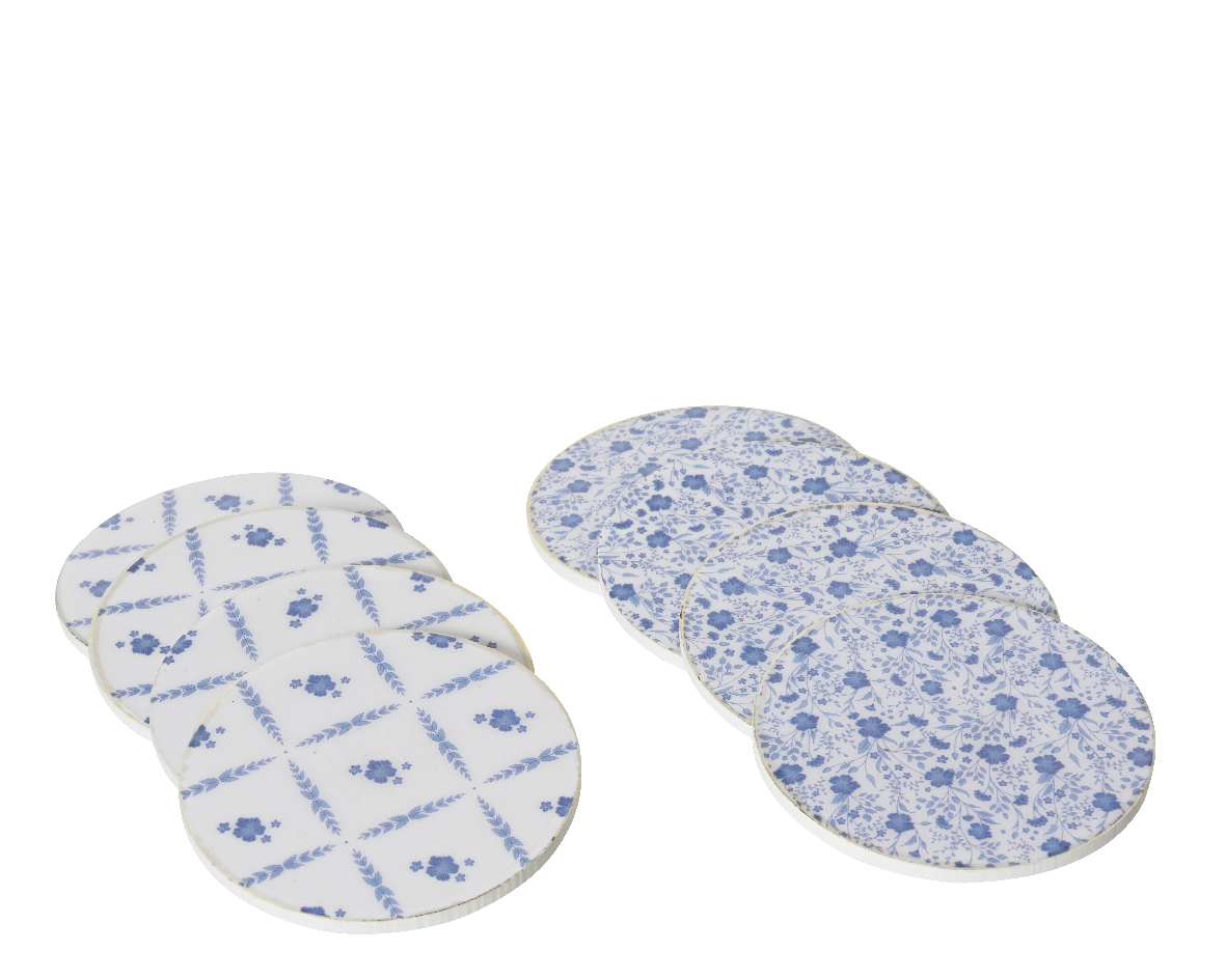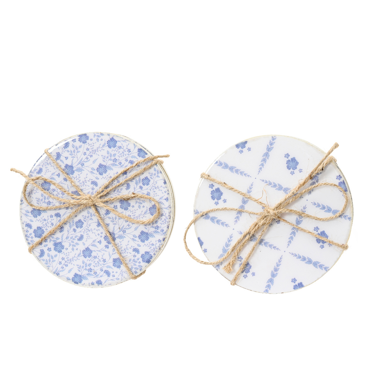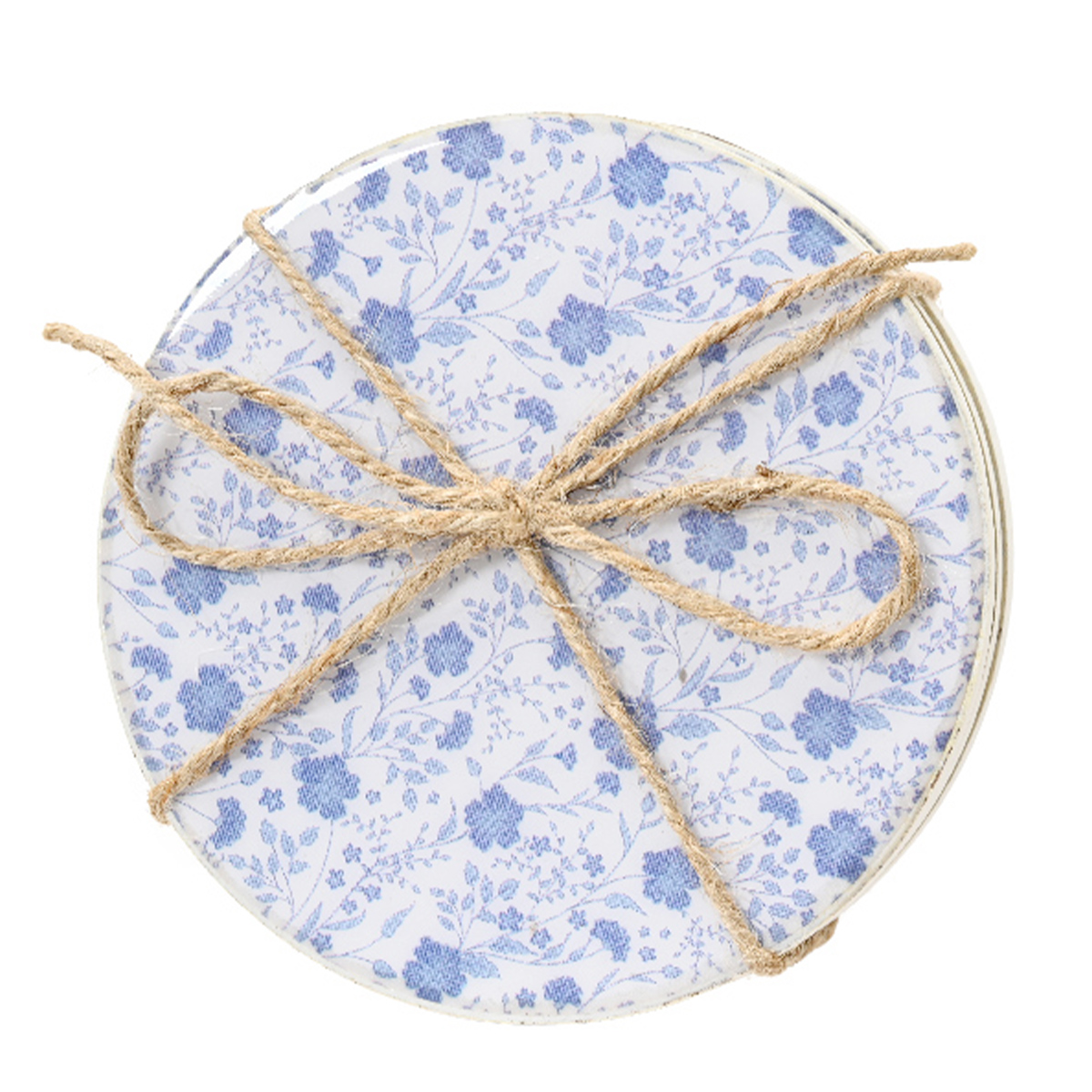 Deko Untersetzer Blumenranken, Holzuntersetzer blau-weiß, Set/4