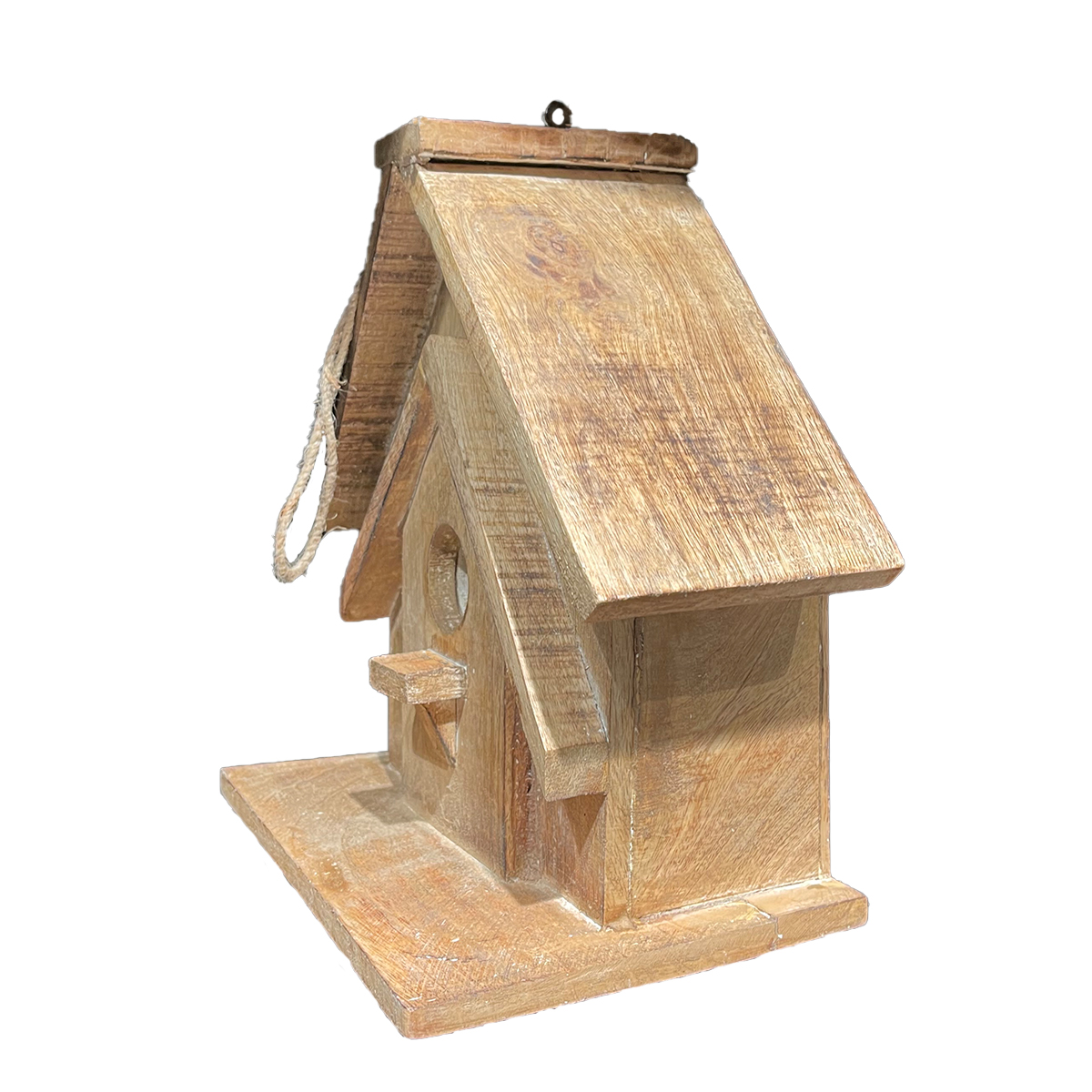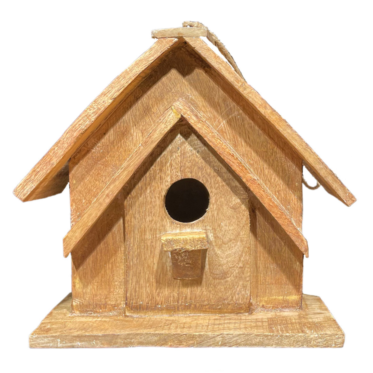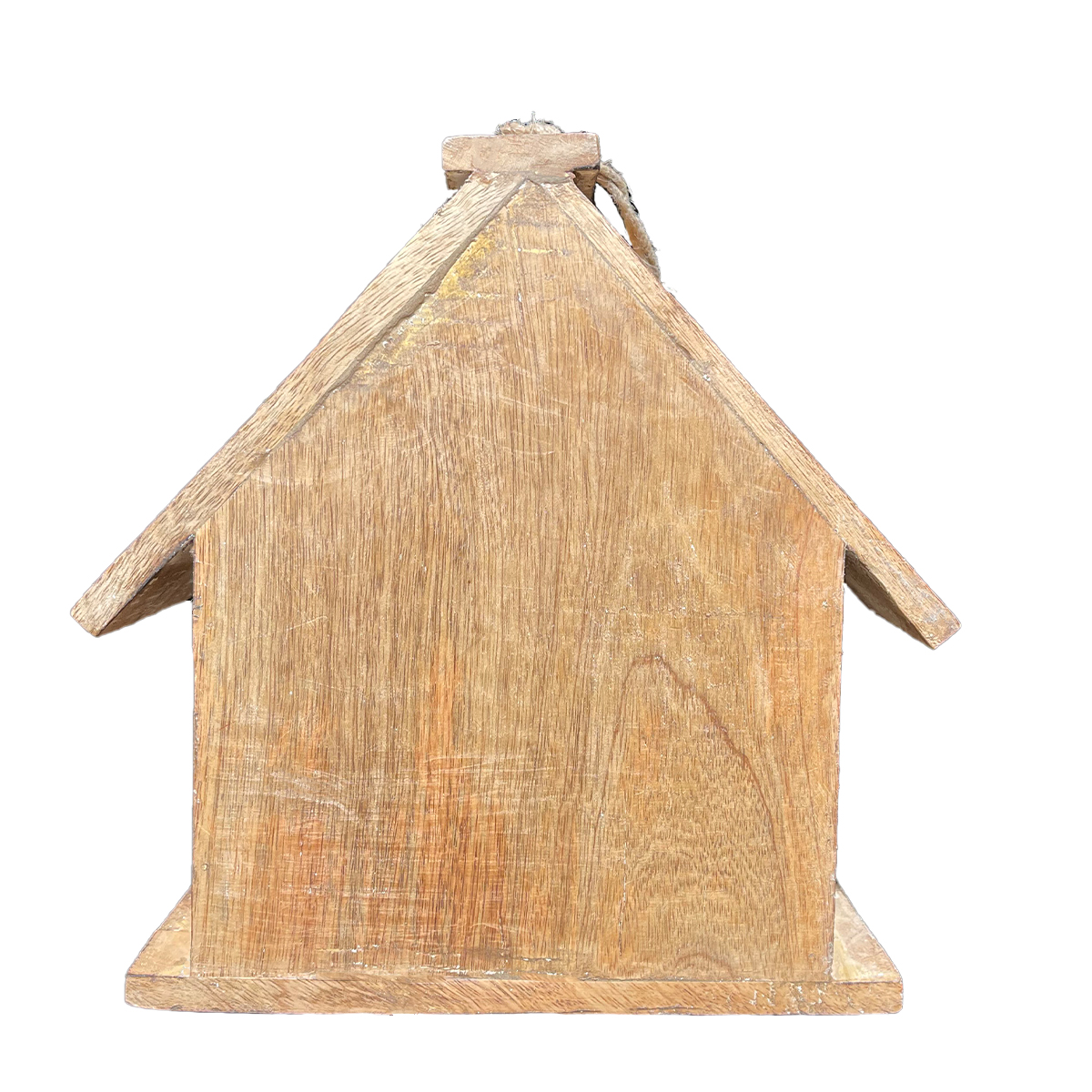 Deko Vogelhaus Natur, Holzhaus aus massivem Mangoholz, zum Hängen oder Stellen, 29cm
