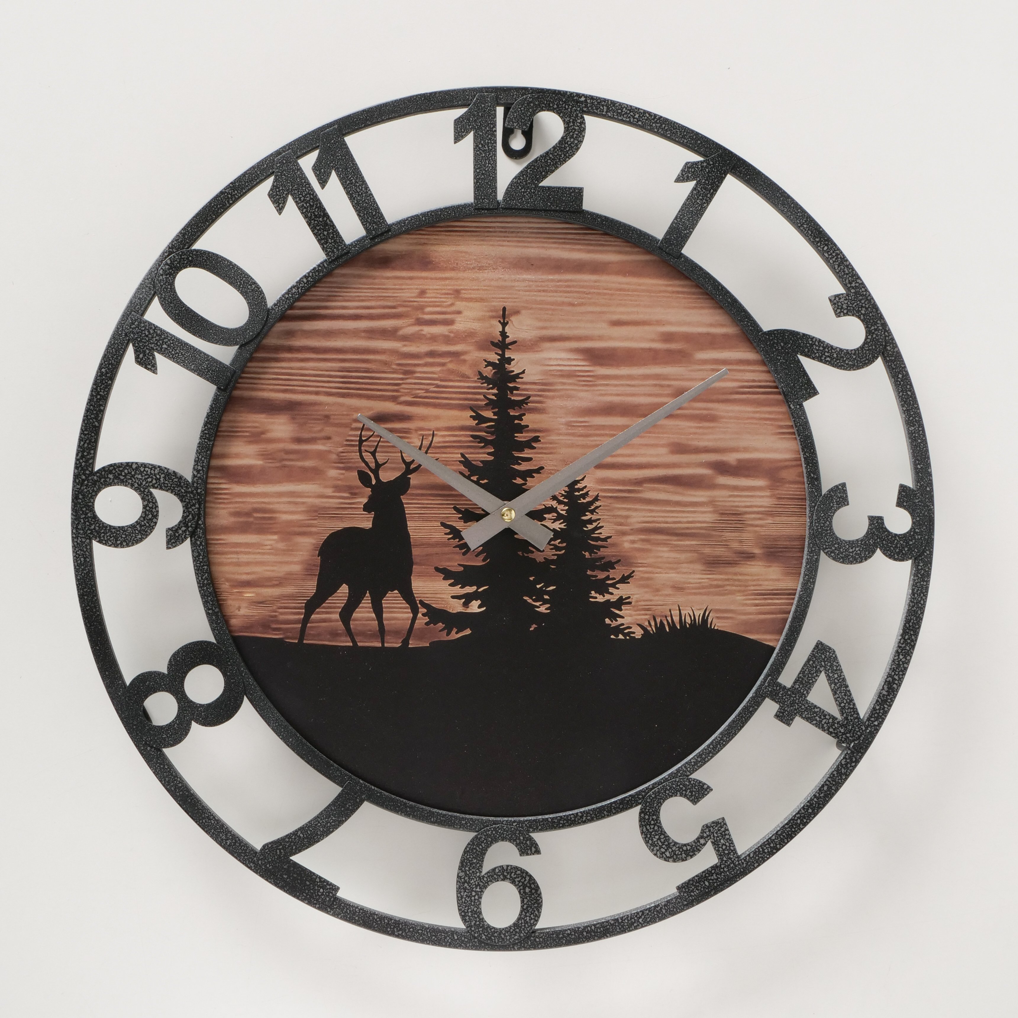 Deko Wanduhr Hirsch Ludwig, Holz-Metalluhr mit Hirsch und Bäume, Ø45cm, Boltze Home Collections
