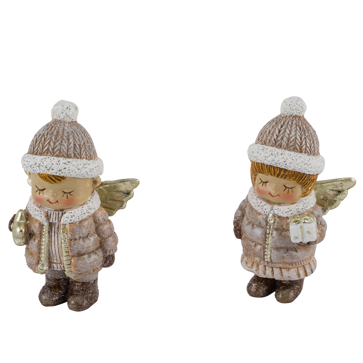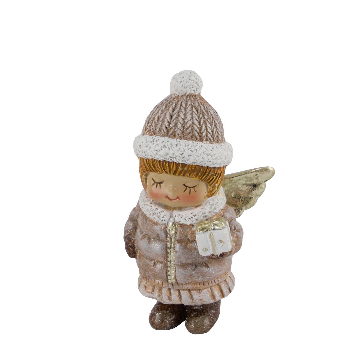 Deko Weihnachtsengel mit Geschenk, putziges Engel-Mädchen mit Pudelmütze, 8cm