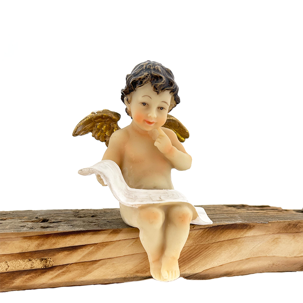 Deko Weihnachtsengel Nostalgie, Engel mit Papierrolle, Kantenhocker, 9cm, Polyresin