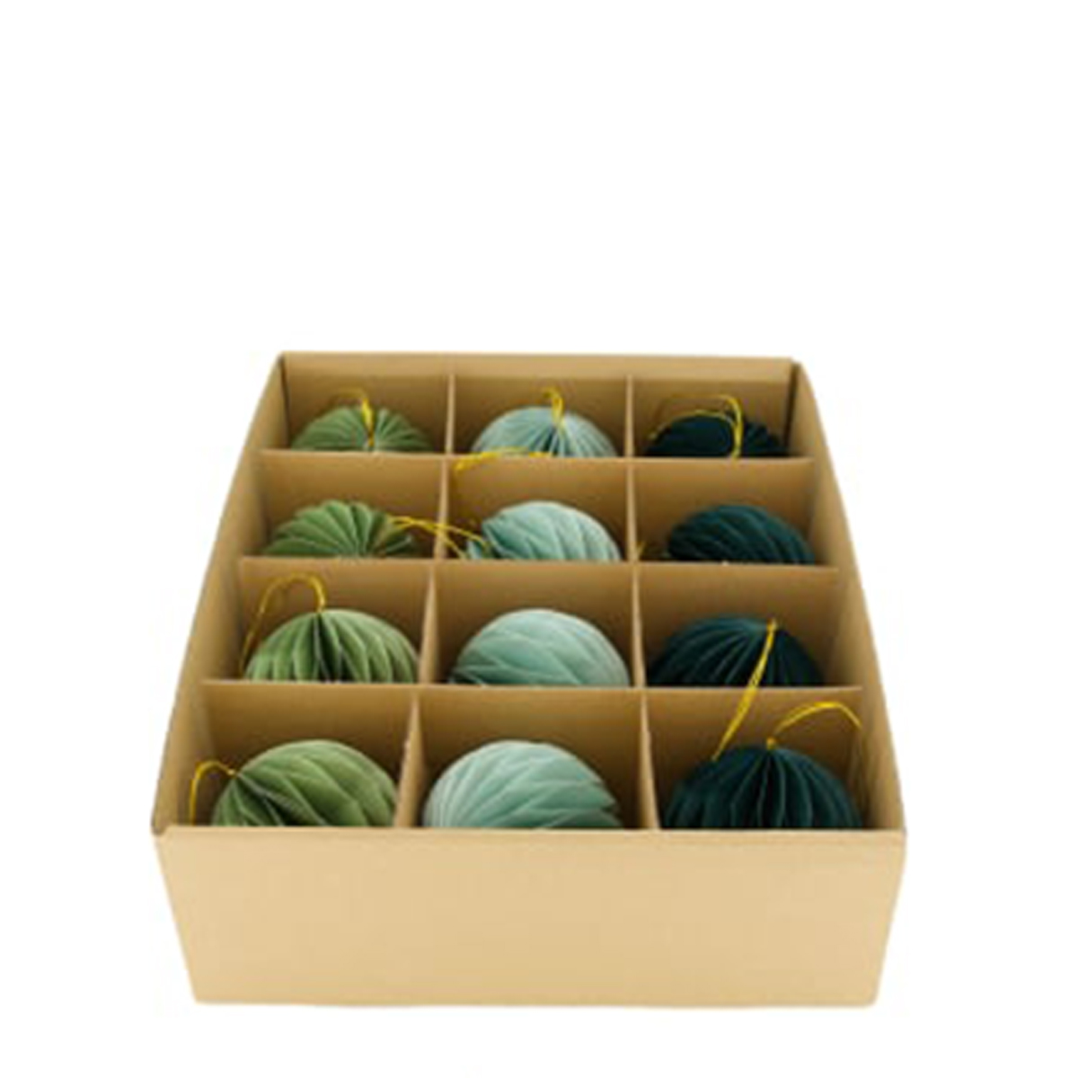 Deko Weihnachtskugel Papier hellgrün, dunkelgrün, mint, Ø8cm, DIJK Natural Collections
