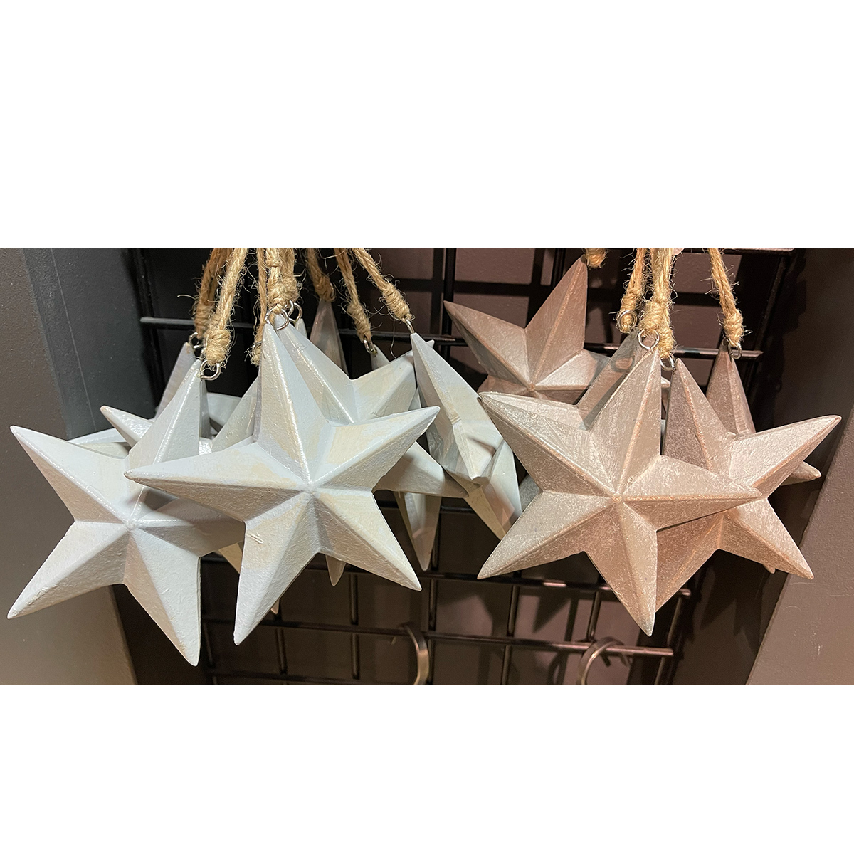 Deko Weihnachtsstern, Holzstern glänzend grau used look, Ø10cm, Hänger