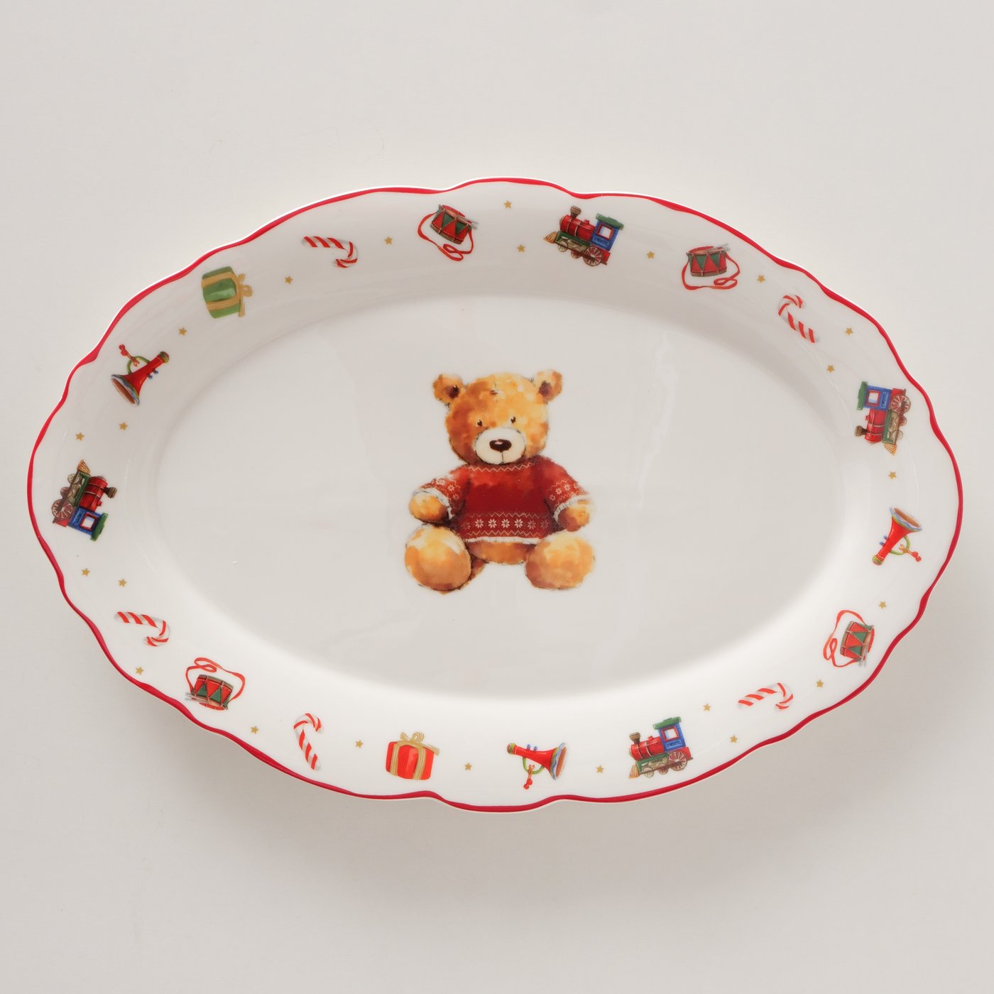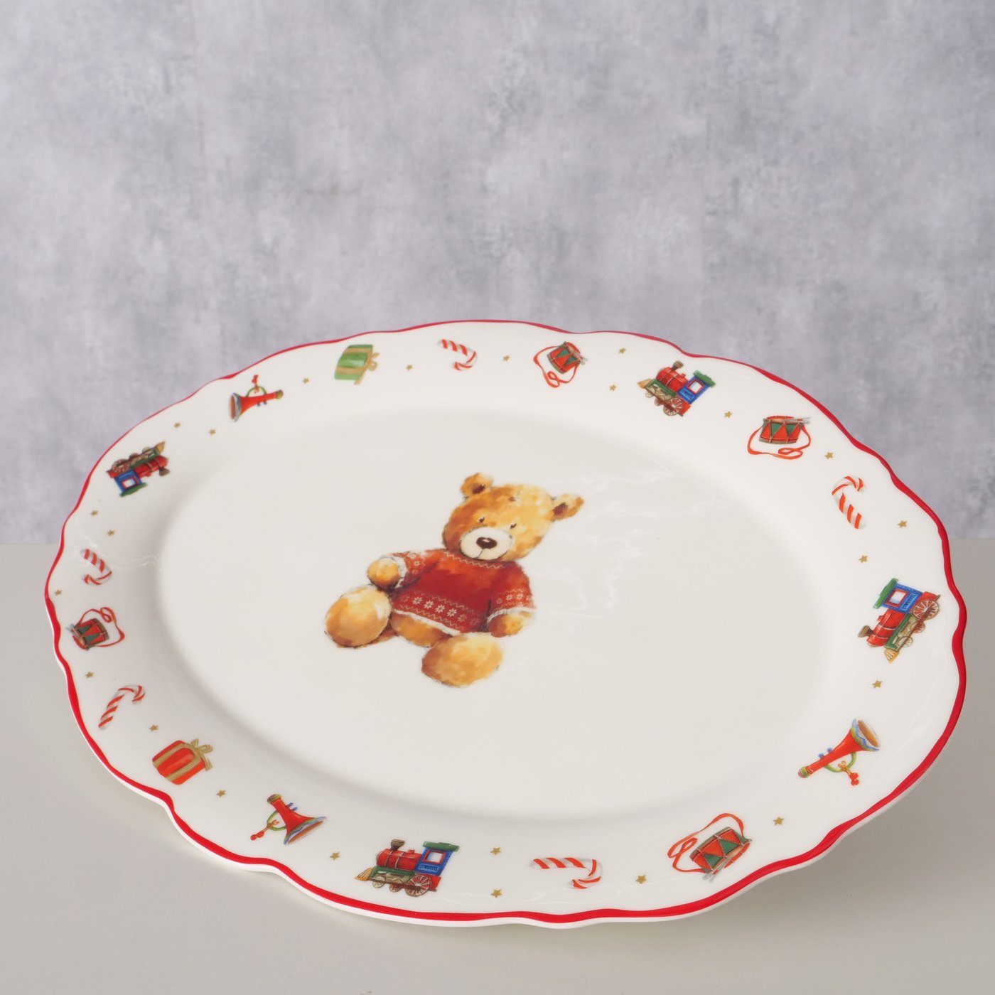 Deko Weihnachtsteller Bailey, Servierplatte mit Teddy-Motiv, 21x31cm, Boltze Home Collections