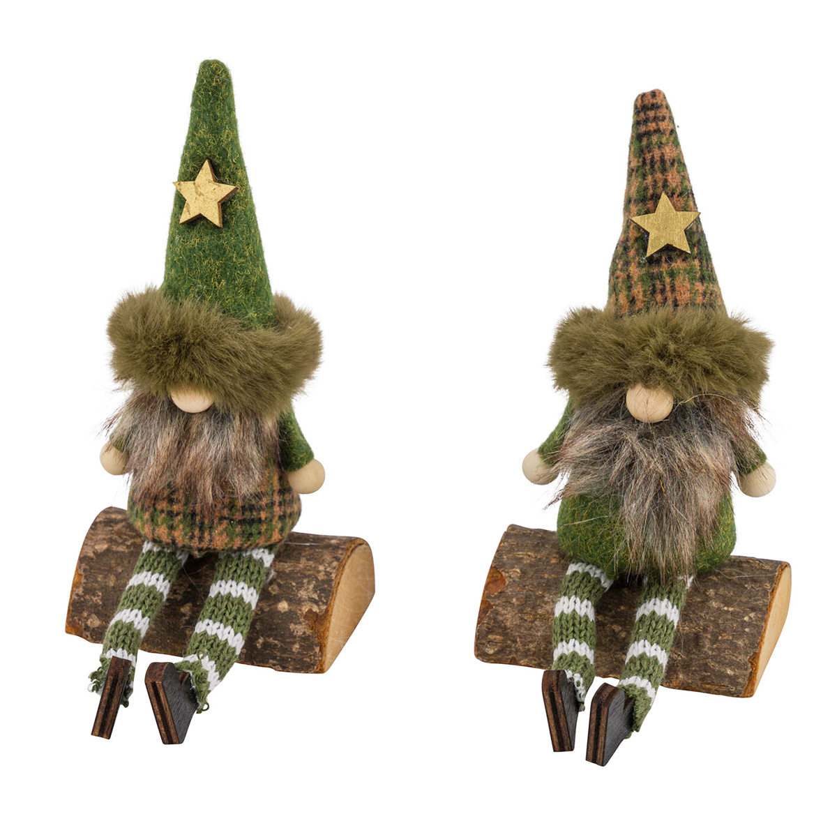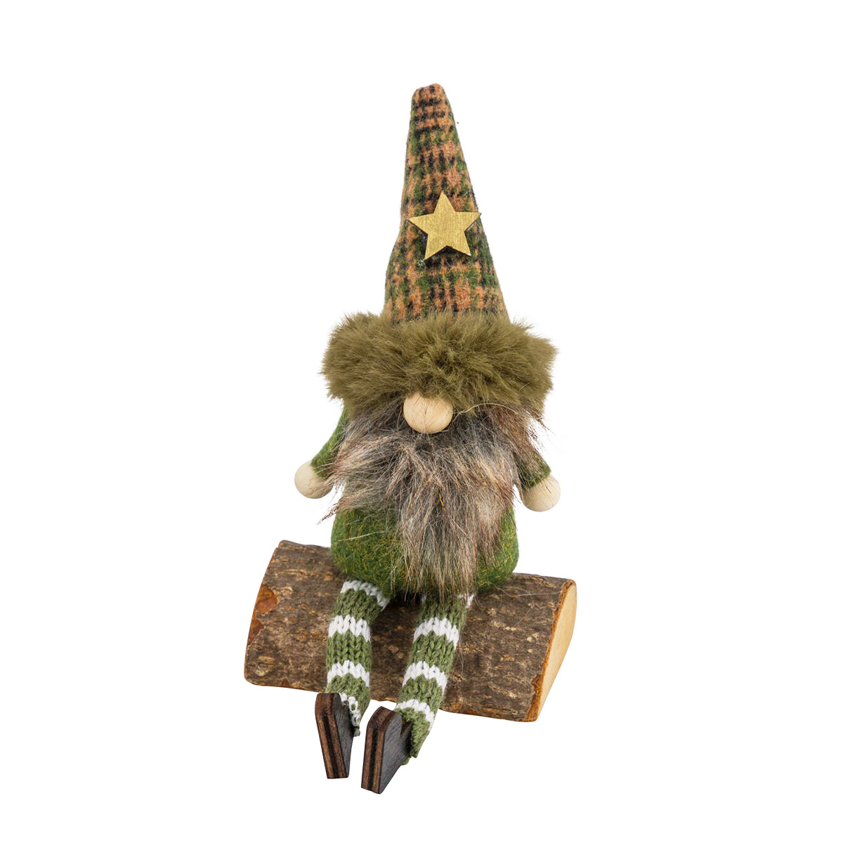 Produktinformationen "Deko Wichtel mit Bart, Stoffwichtel auf Holz, braun-grüne Mütze"