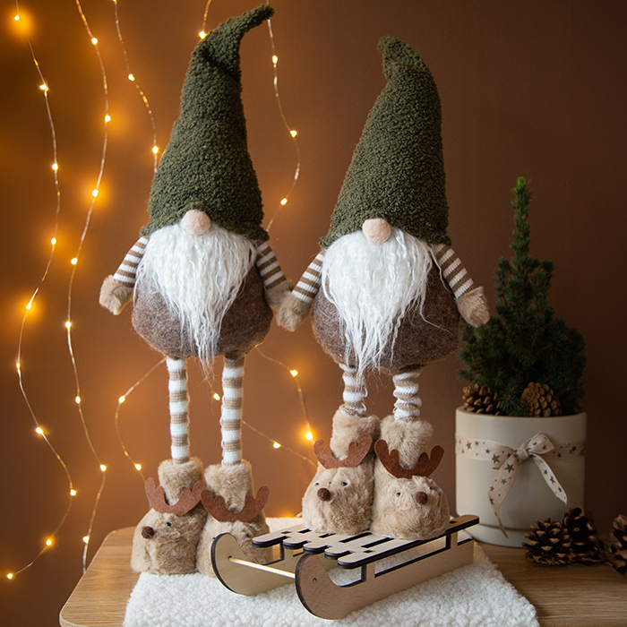 Deko Wichtel, Stoffwichtel mit Teleskopbeine, Plüschmütze und Hundeschuhe, 70cm