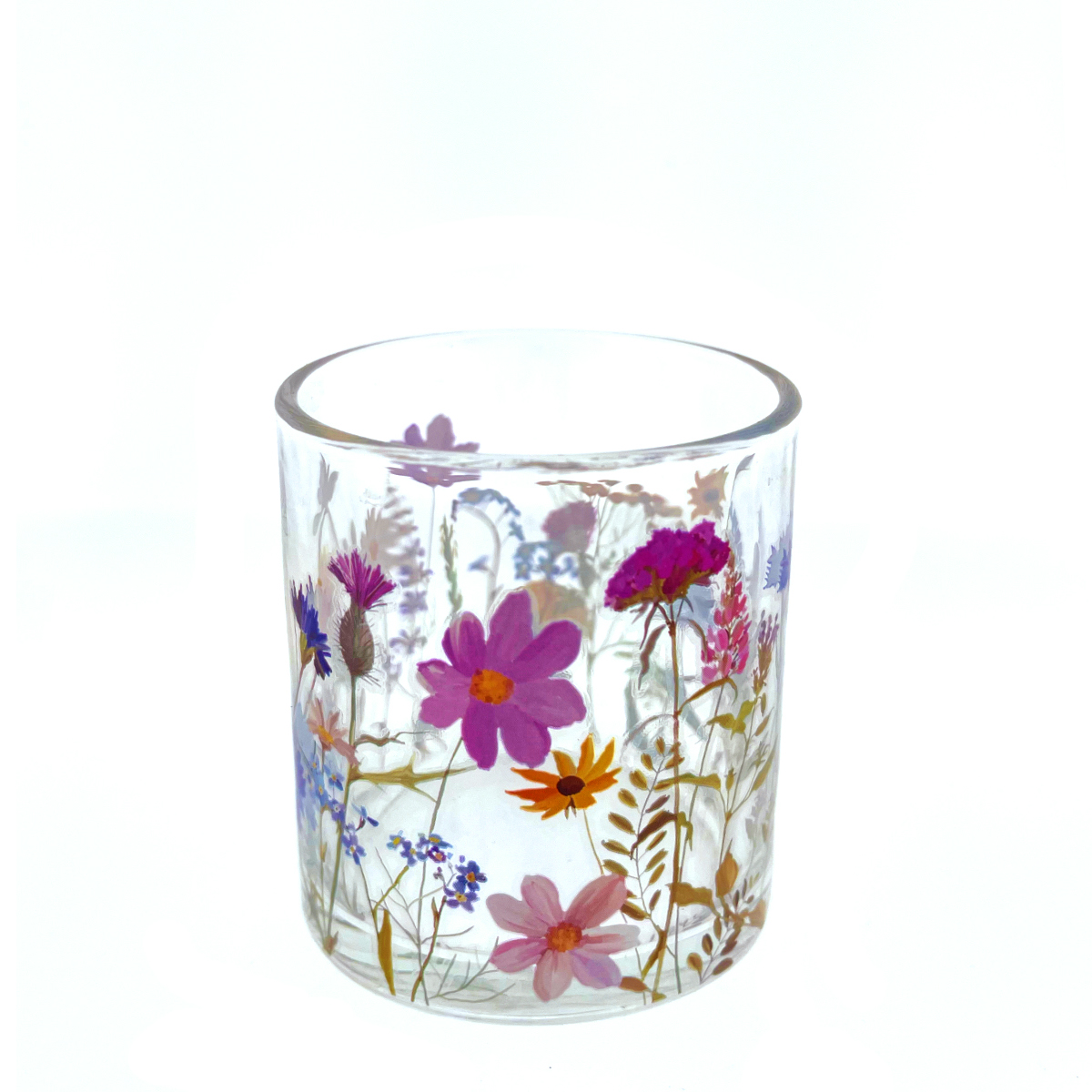 Deko Windlicht Blumen, Windlichtglas mit Blumen, 7x8cm