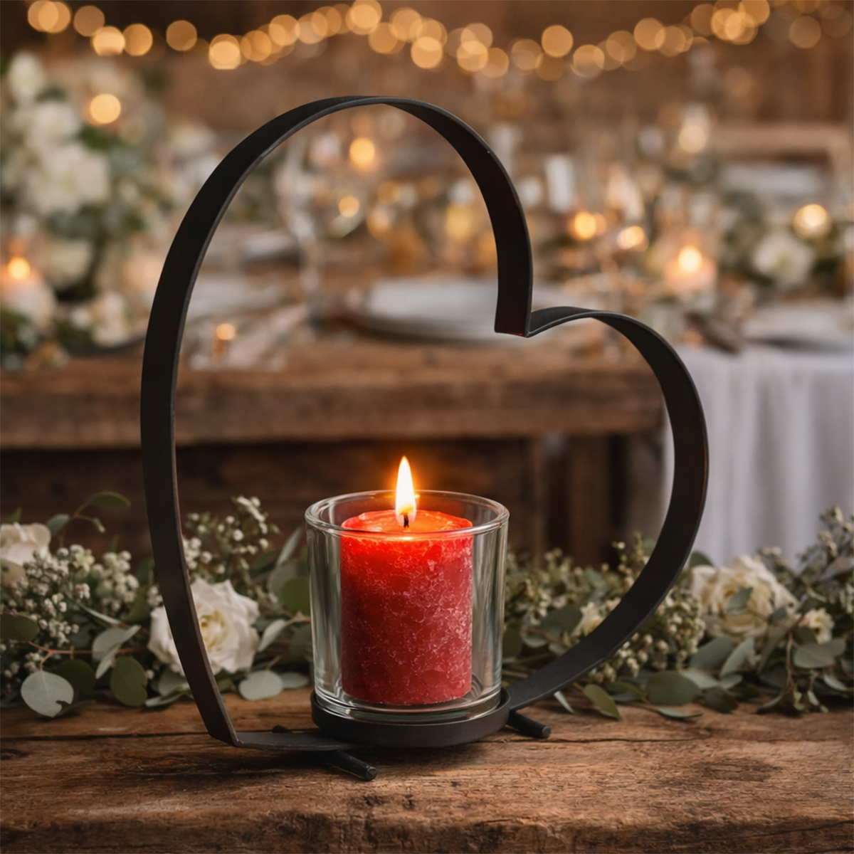 Dieses dekorative Windlicht in Herzform verbindet modernes Metall mit warmem Kerzenlicht und schafft im Handumdrehen eine besonders gemütliche Atmosphäre. Das offene Metallherz auf stabilen Metallfüßen umrahmt das Glaswindlicht stilvoll und setzt Kerzenlicht wunderschön in Szene, sodass ein sanftes, stimmungsvolles Licht entsteht. Ob auf dem Tisch, der Kommode, im Eingangsbereich oder als liebevoller Blickfang in Wohn- und Schlafzimmer – dieses Herz sorgt das ganze Jahr über für eine warme, wohnliche Stimmung und ist nicht nur zur Hochzeit oder zum Valentinstag eine schöne Dekoration.