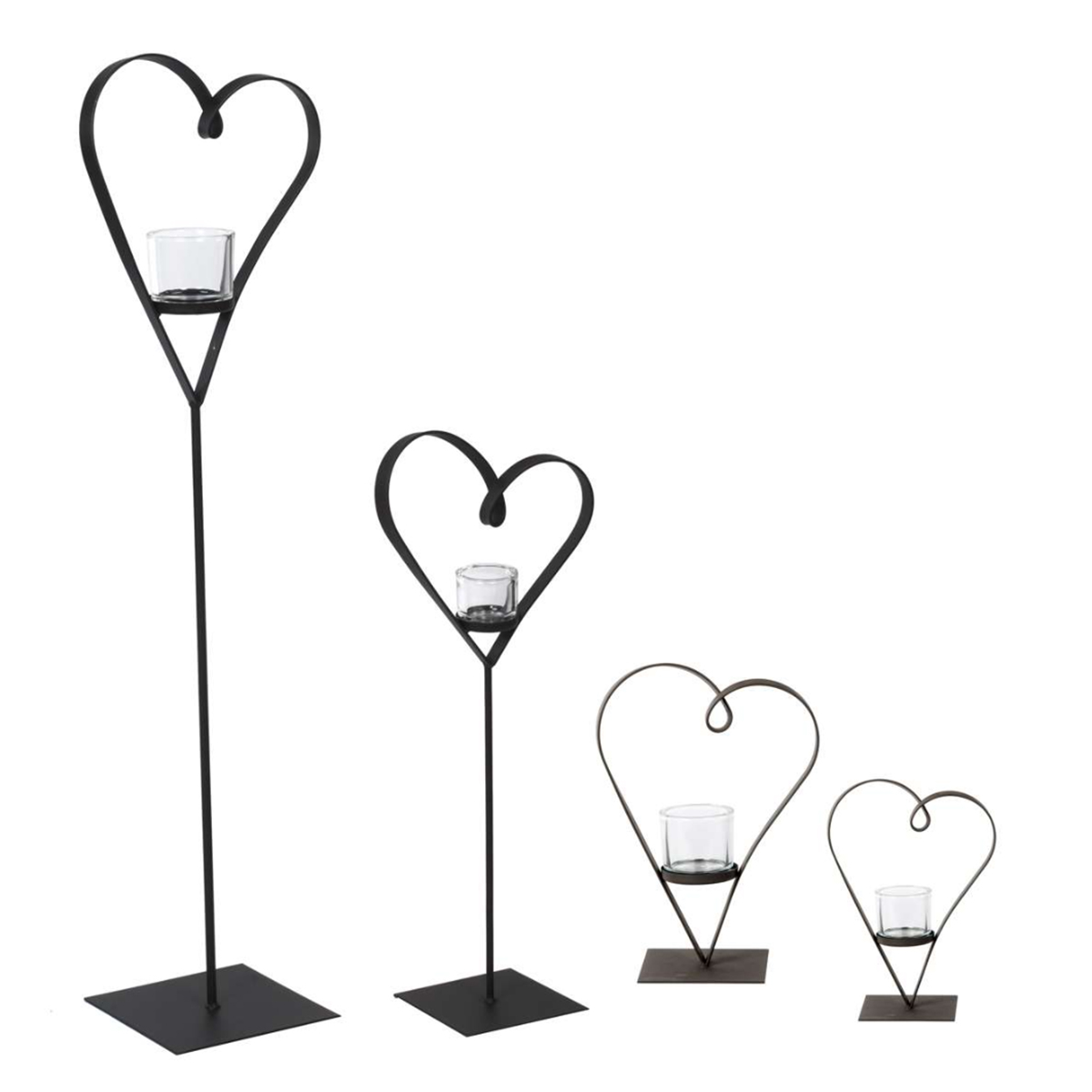 Deko Windlicht Herz Diana, geschwungenes Metallherz auf Fuß, 40cm, WMG Grünberger