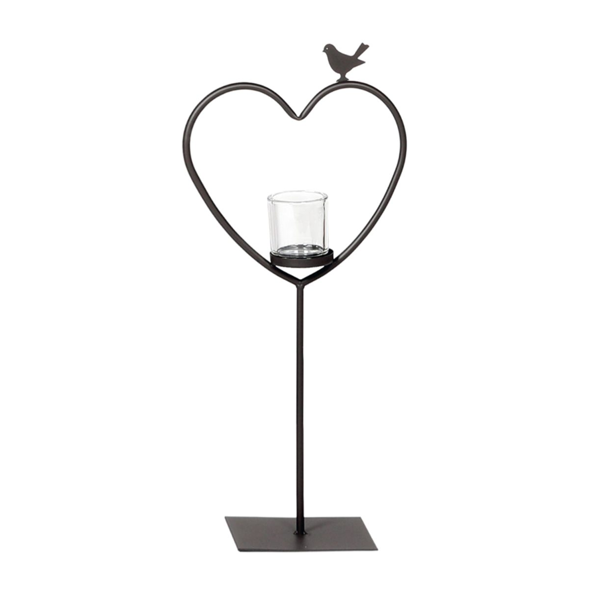 Deko Windlicht Herz Elisa, Metallherz mit Vogel auf Metallständer, 135cm, WMG Grünberger