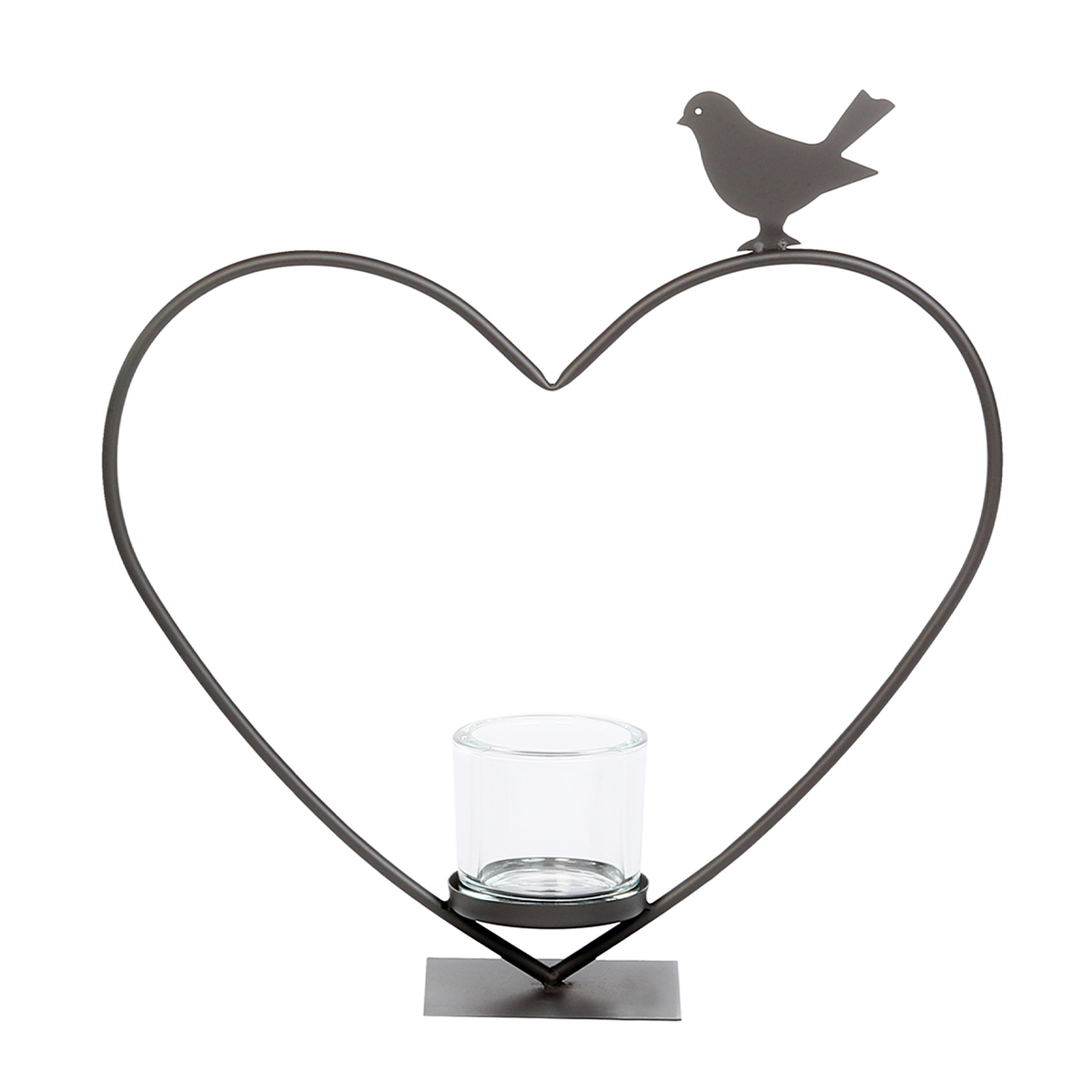Deko Windlicht Herz Elisa, Metallherz mit Vogel auf Metallständer, 40cm, WMG Grünberger